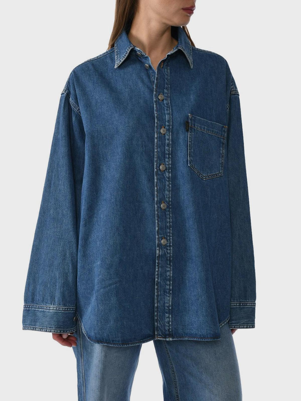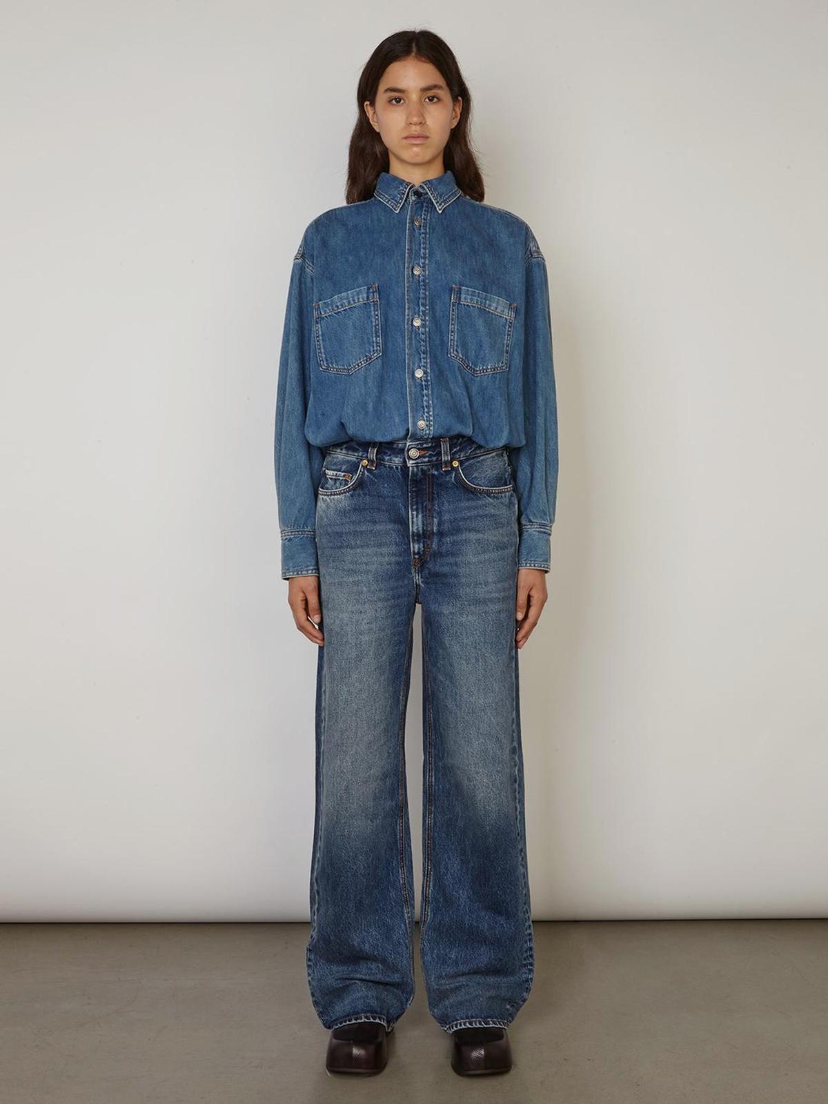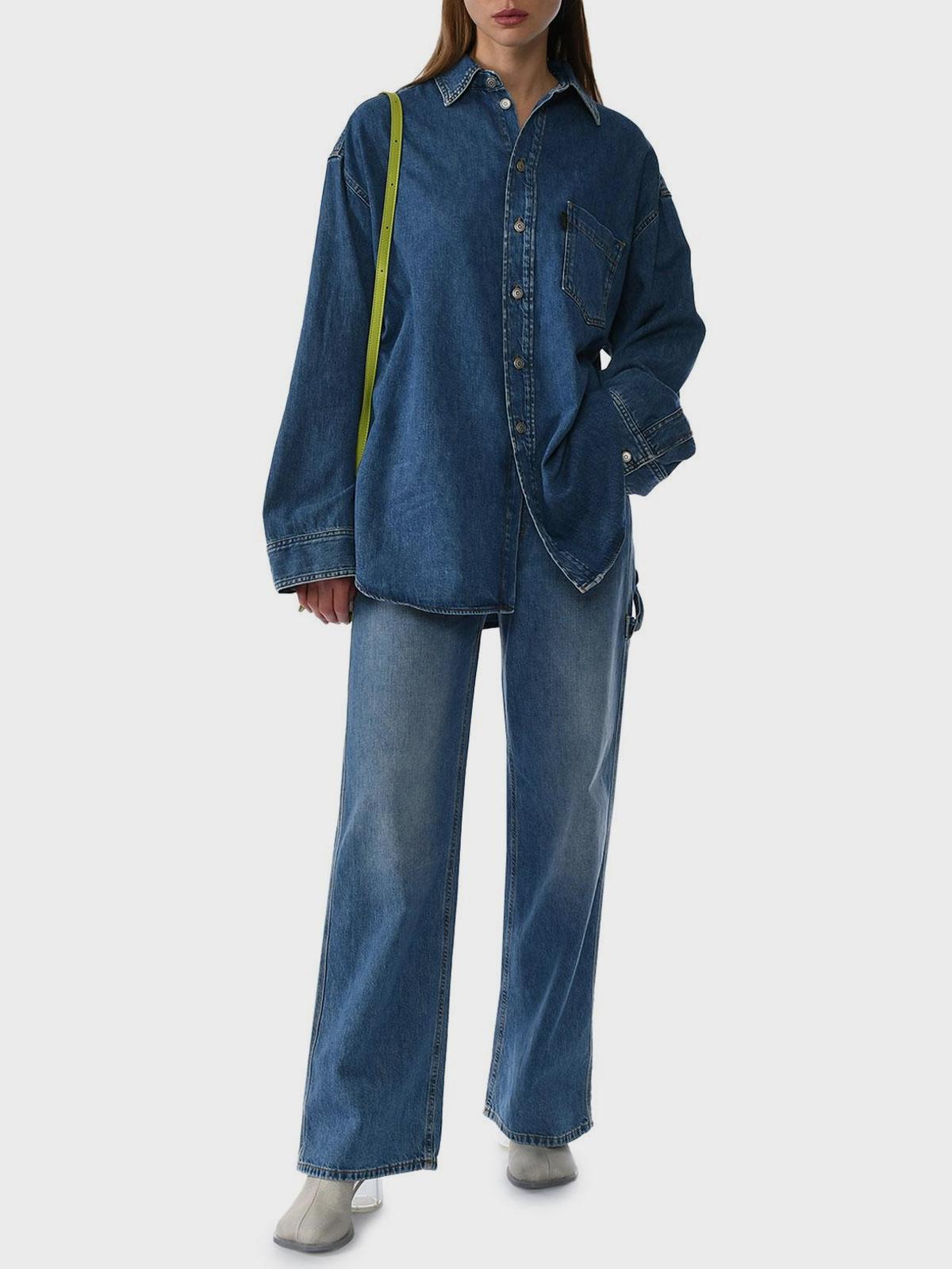 Рубашка свободная на кнопках, синяя