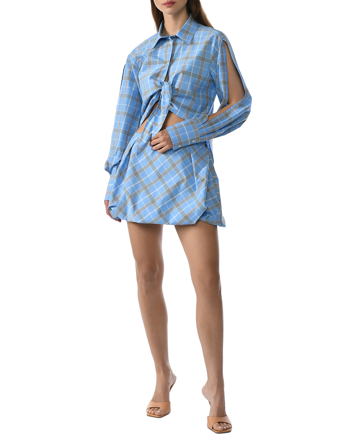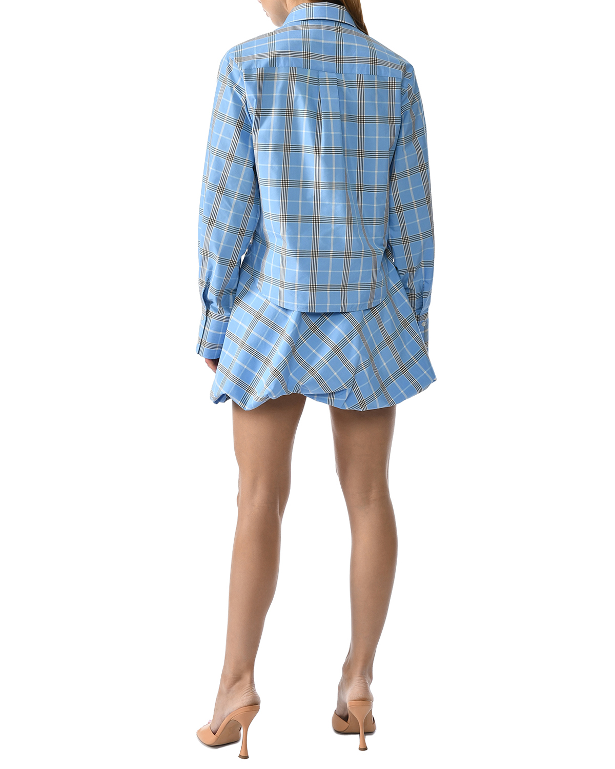 Укороченная рубашка в клетку, голубая
