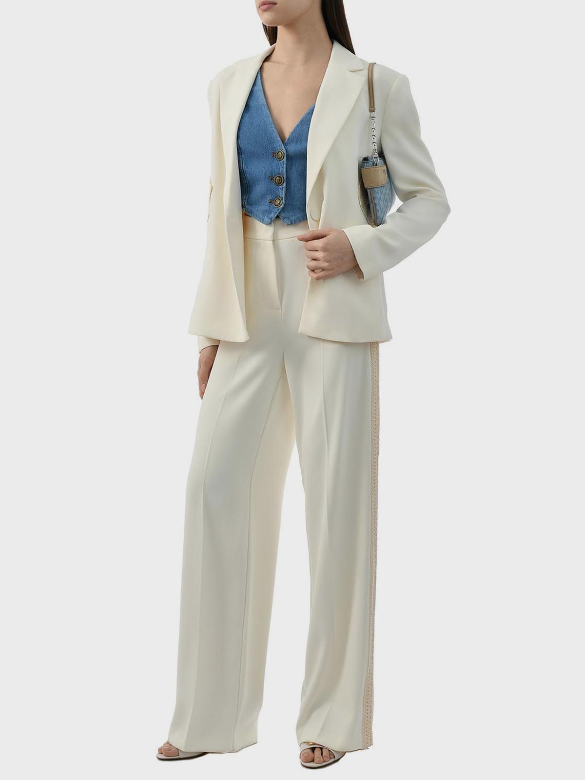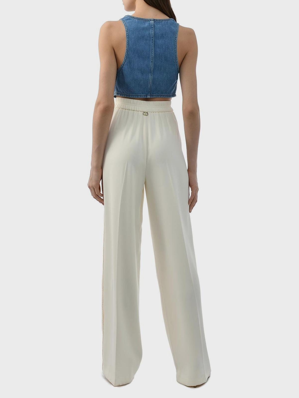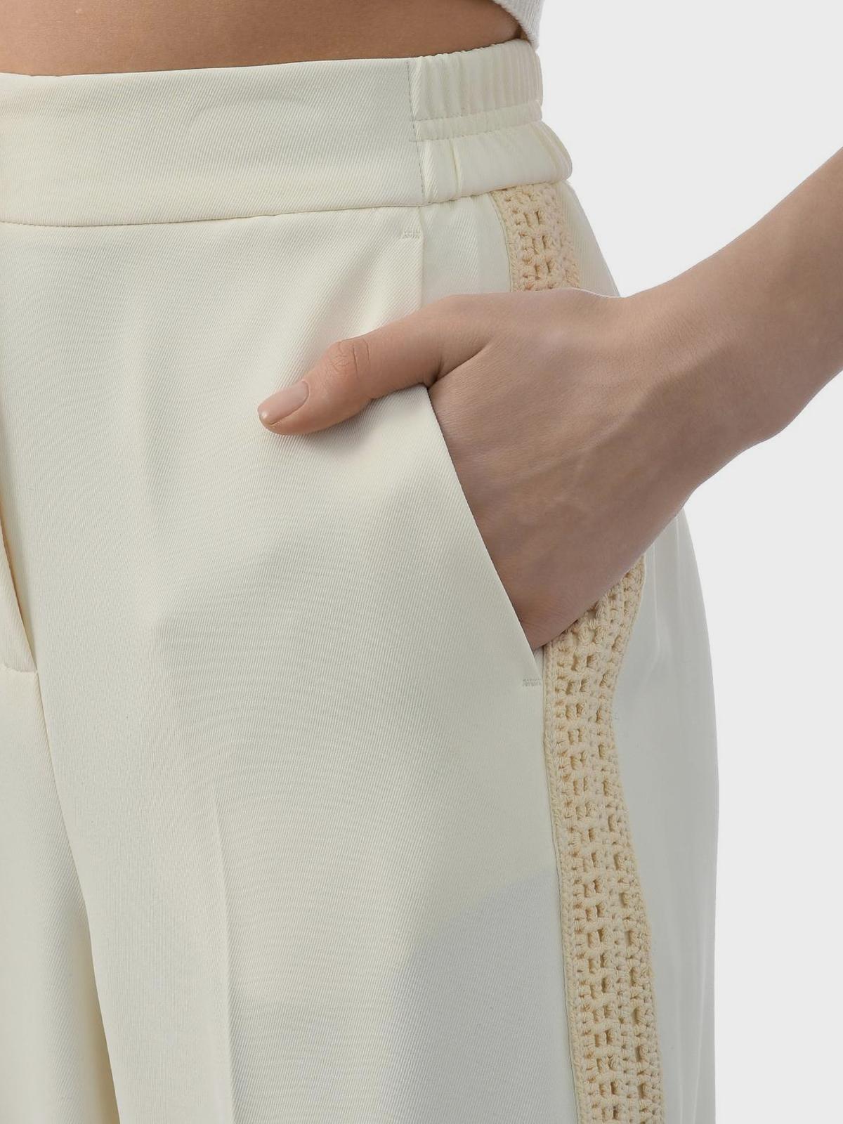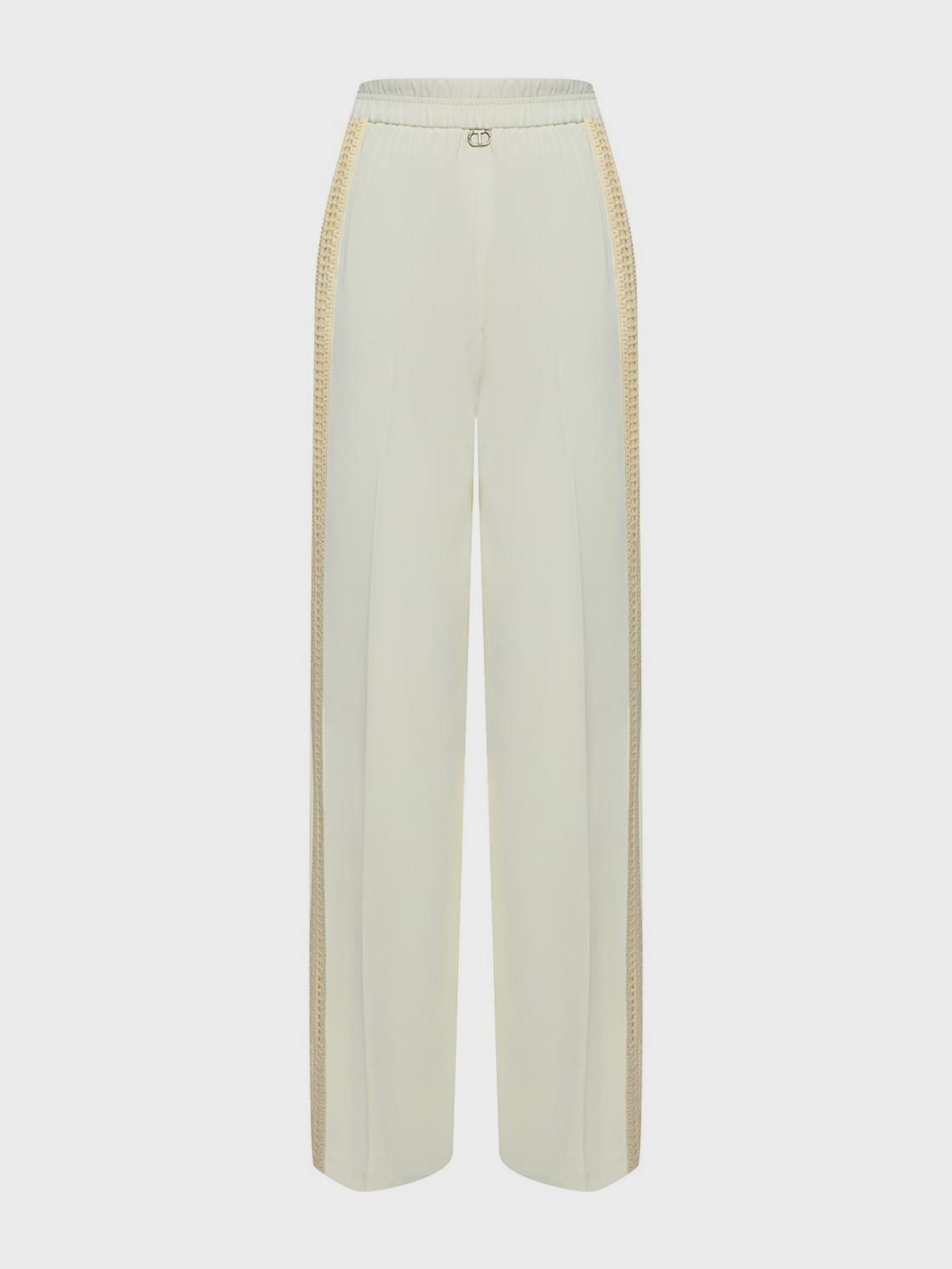 Главная / Женские коллекции / Одежда / Брюки / Twin Set / Брюки палаццо с кружевными лампасами, кремовые