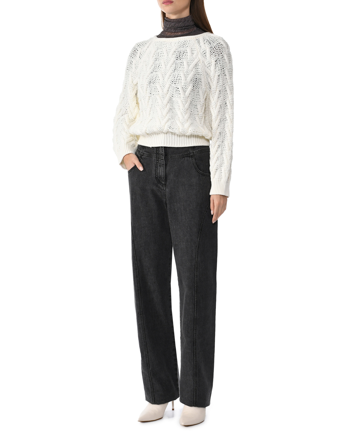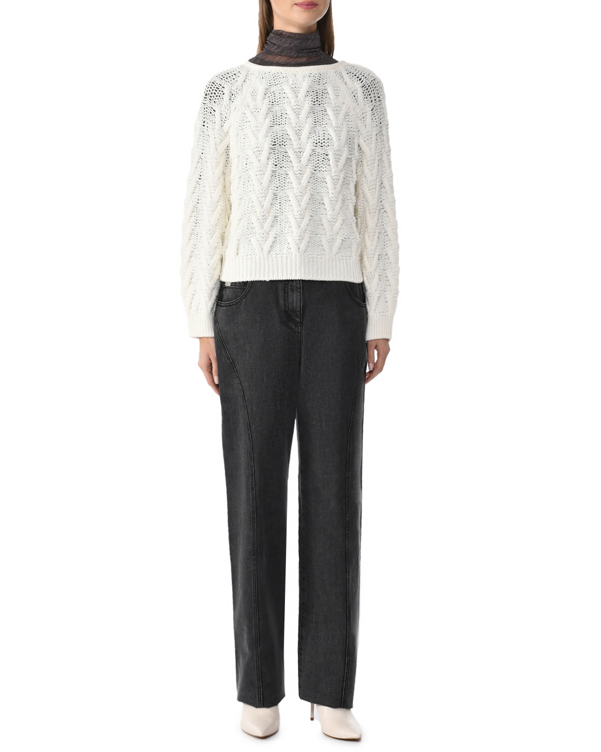 Джемпер укороченный с узором "ёлочка"