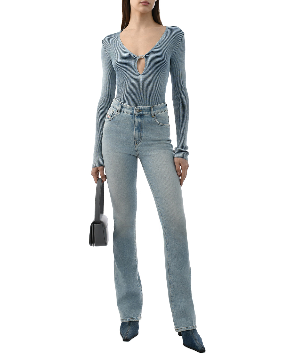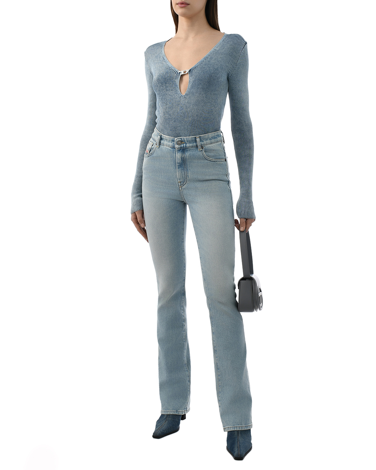 Джемпер в рубчик с вырезом-каплей