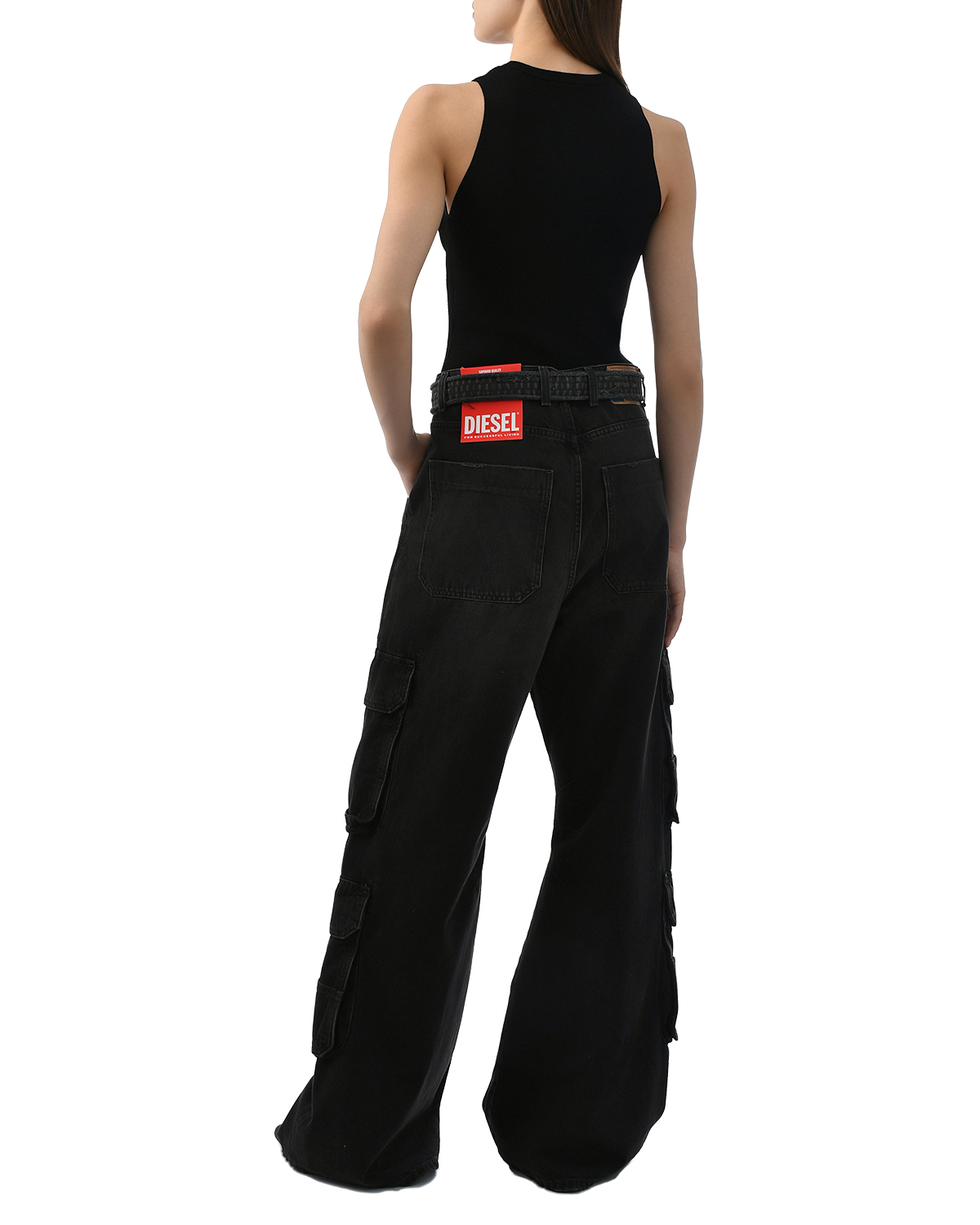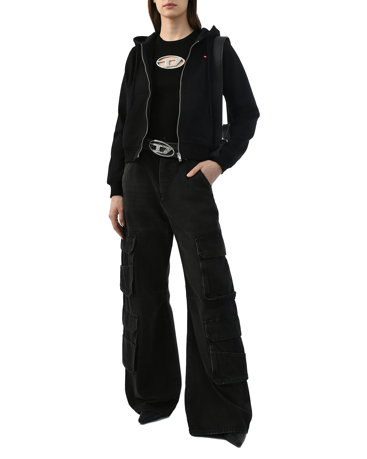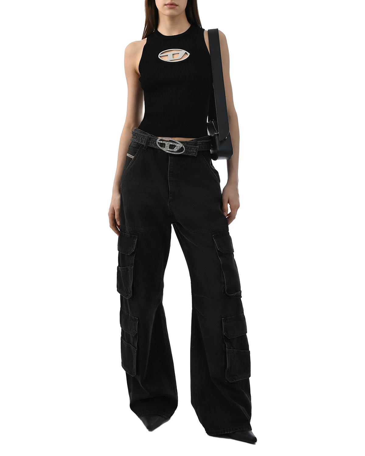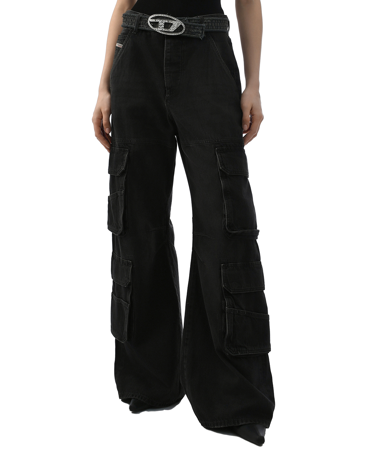 Джинсы карго широкие с низкой посадкой, черные
