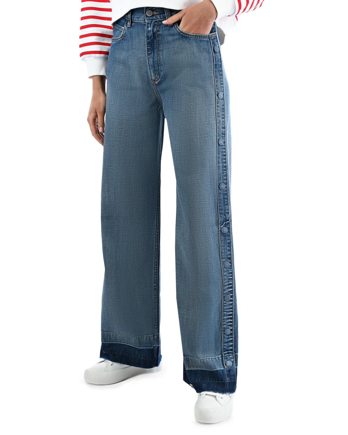 Голубые джинсы с необработанным краем