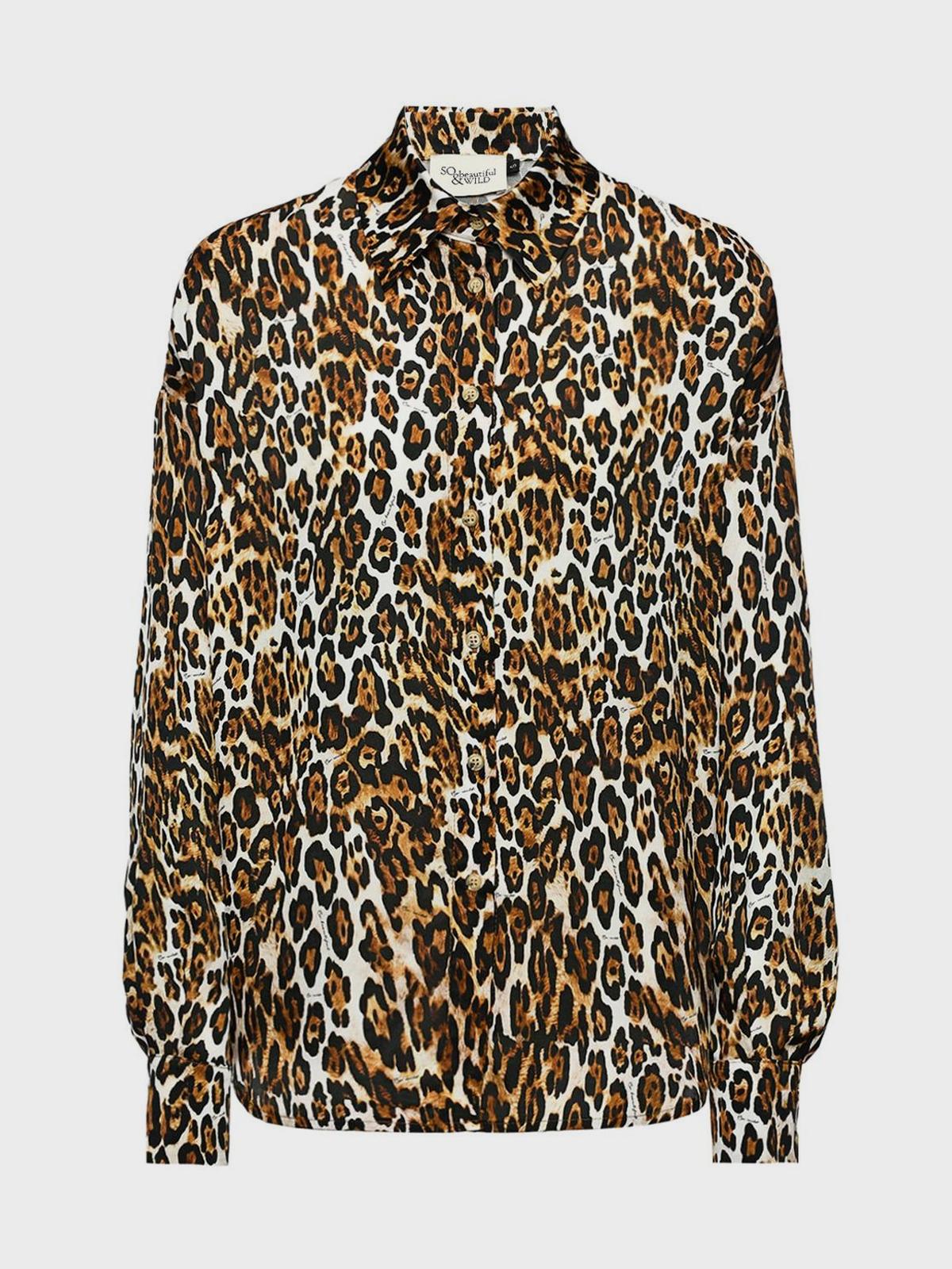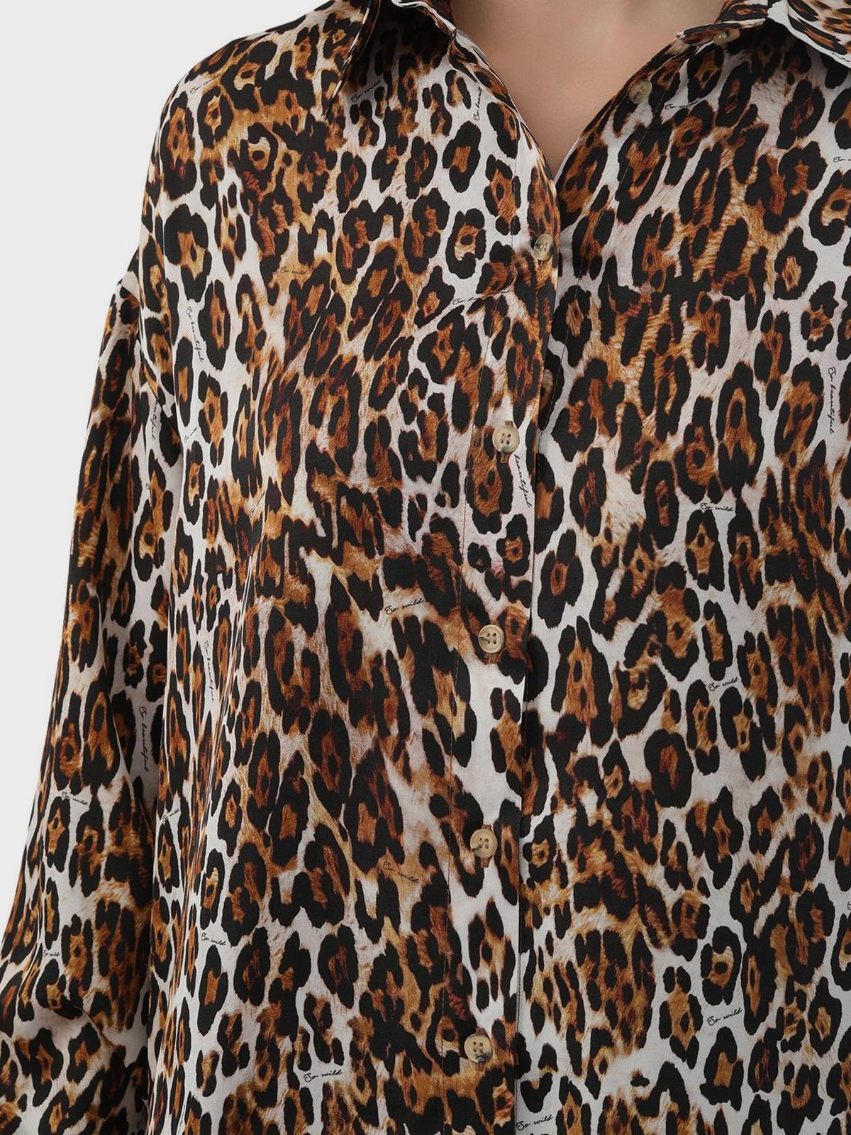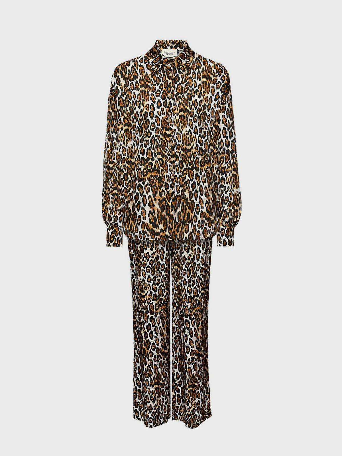 Комплект: рубашка и брюки в пижамном стиле, леопард