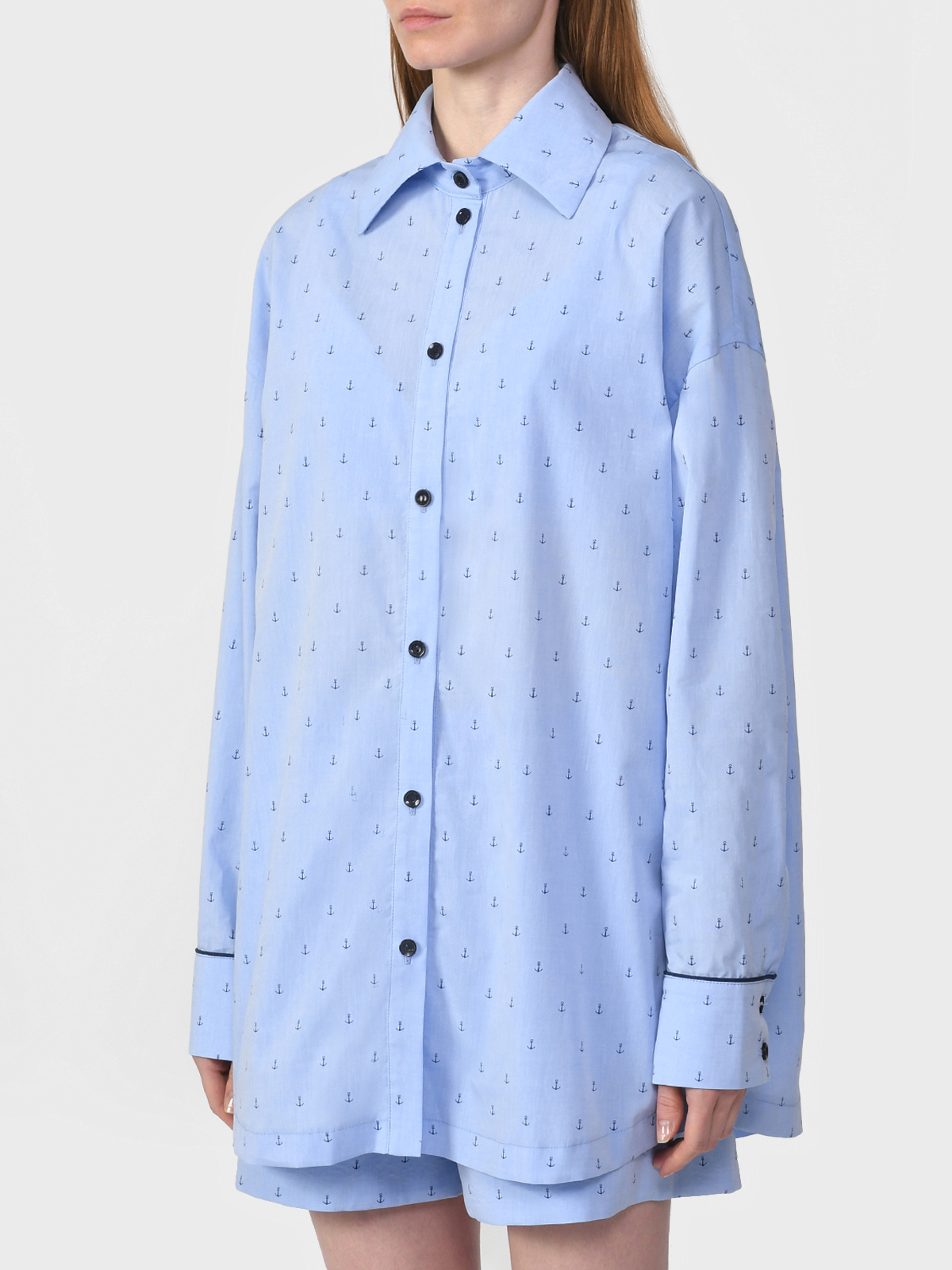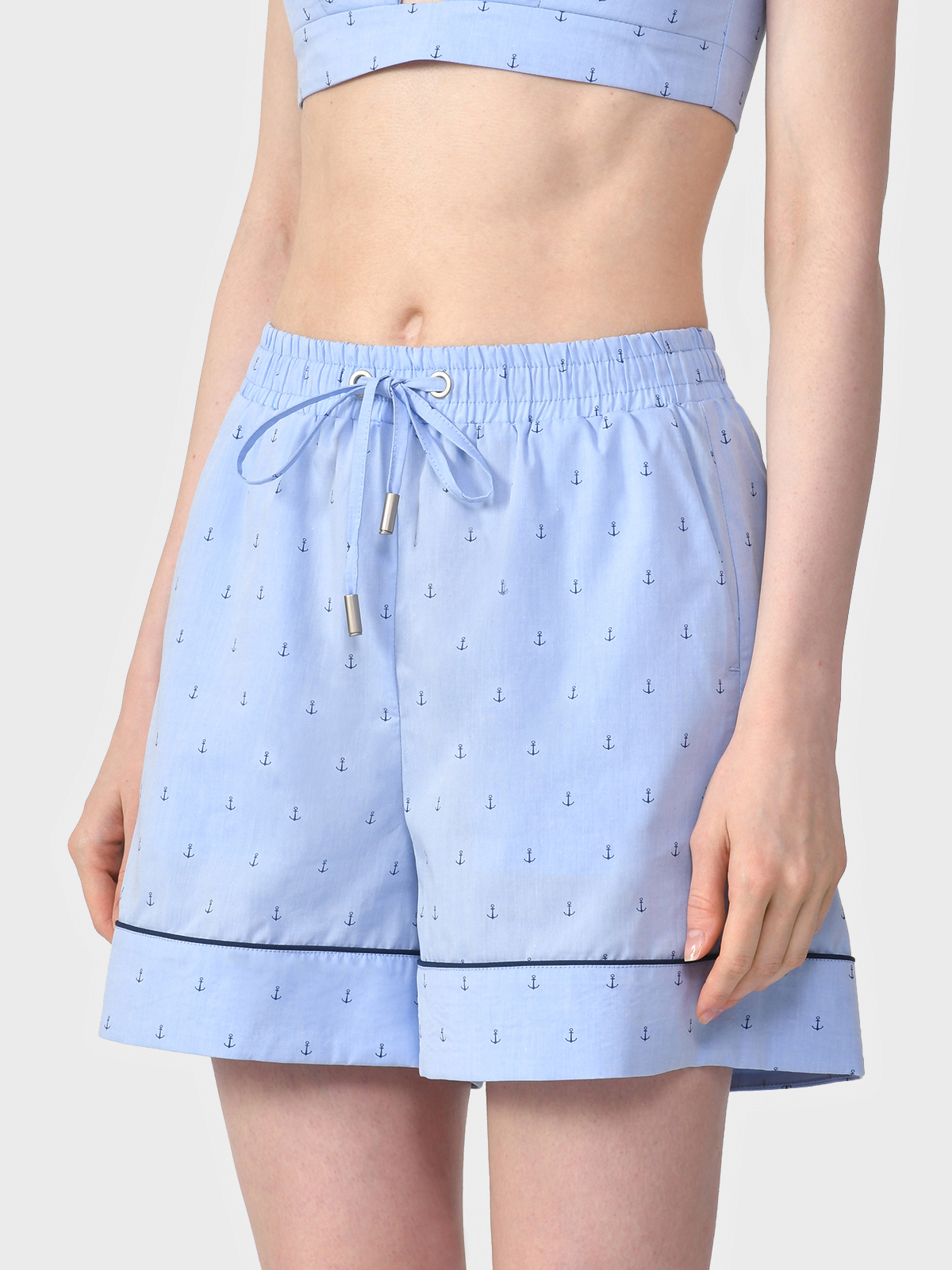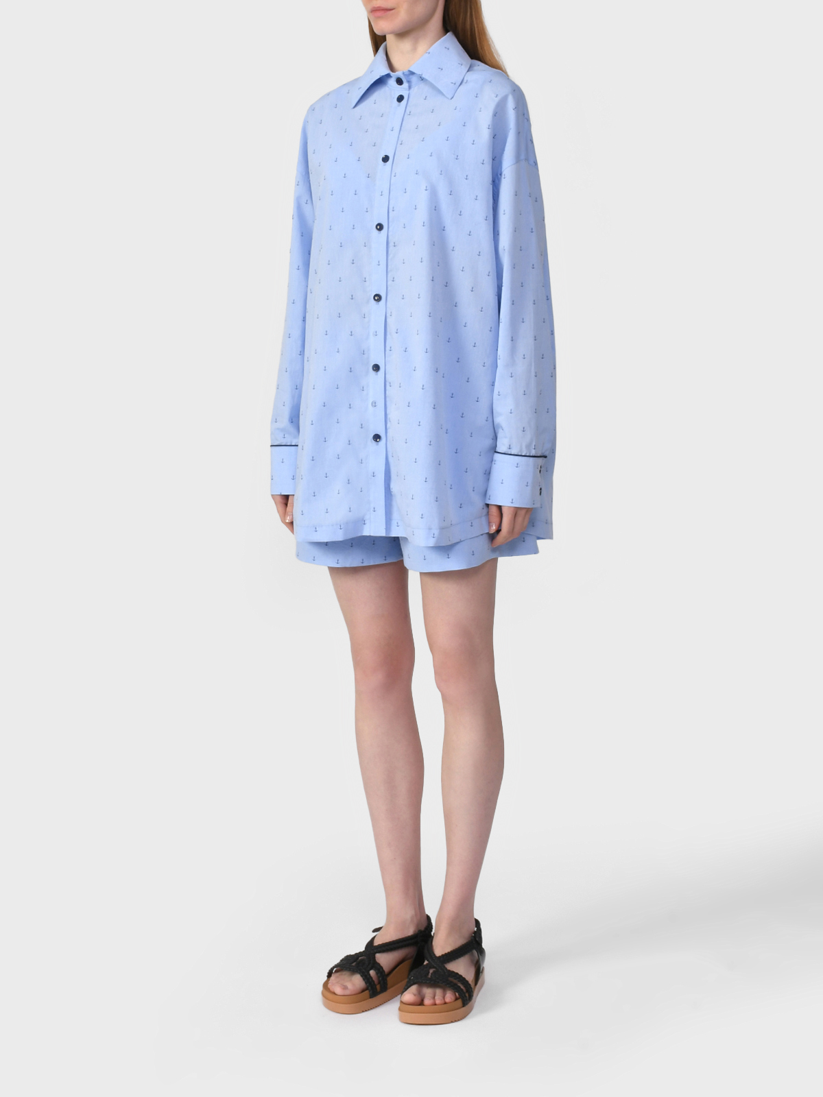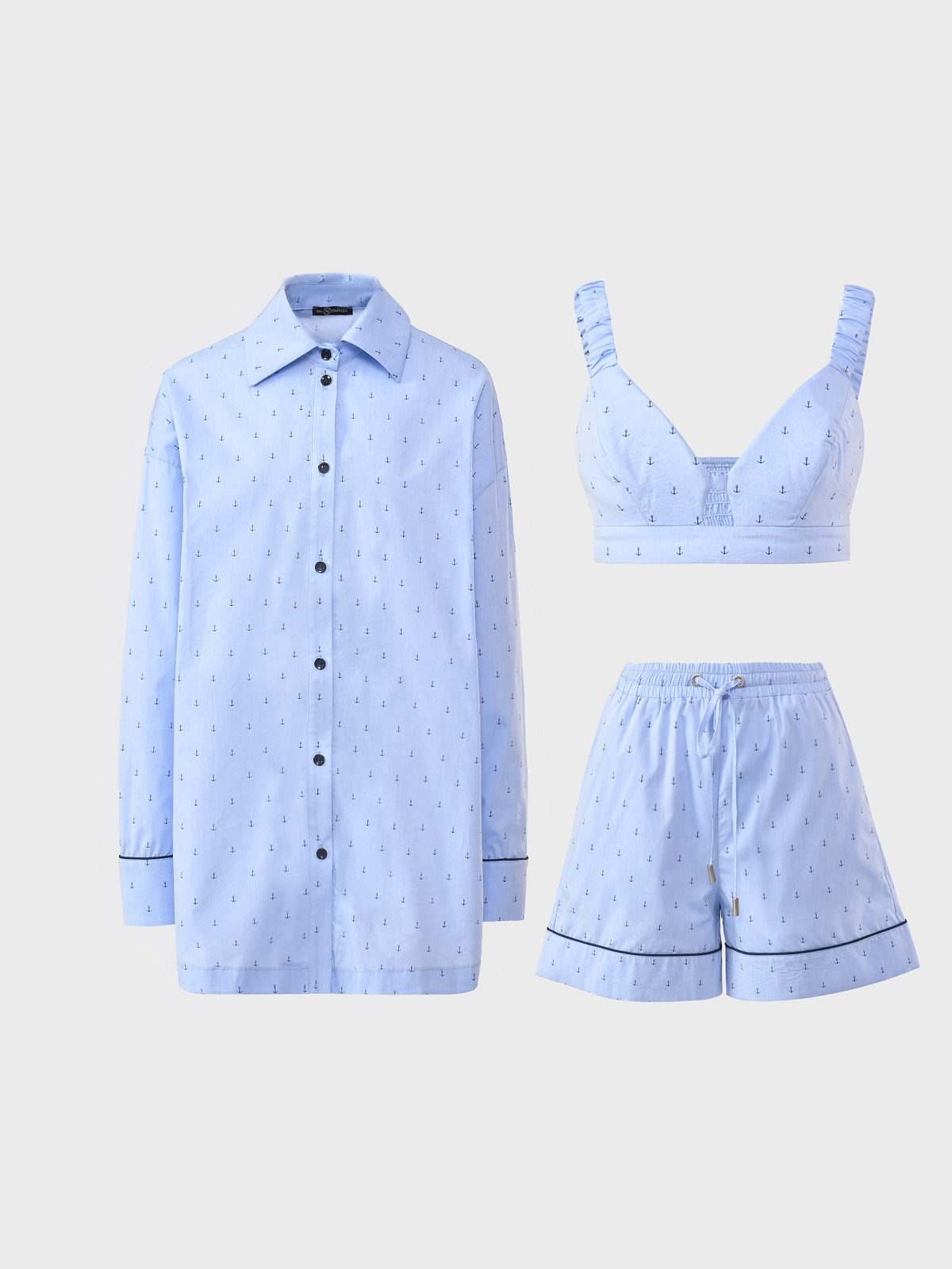 Главная / Женские коллекции / Одежда / Костюмы, комплекты / Dan Maralex / Комплект: рубашка, шорты и топ, принт "якоря"