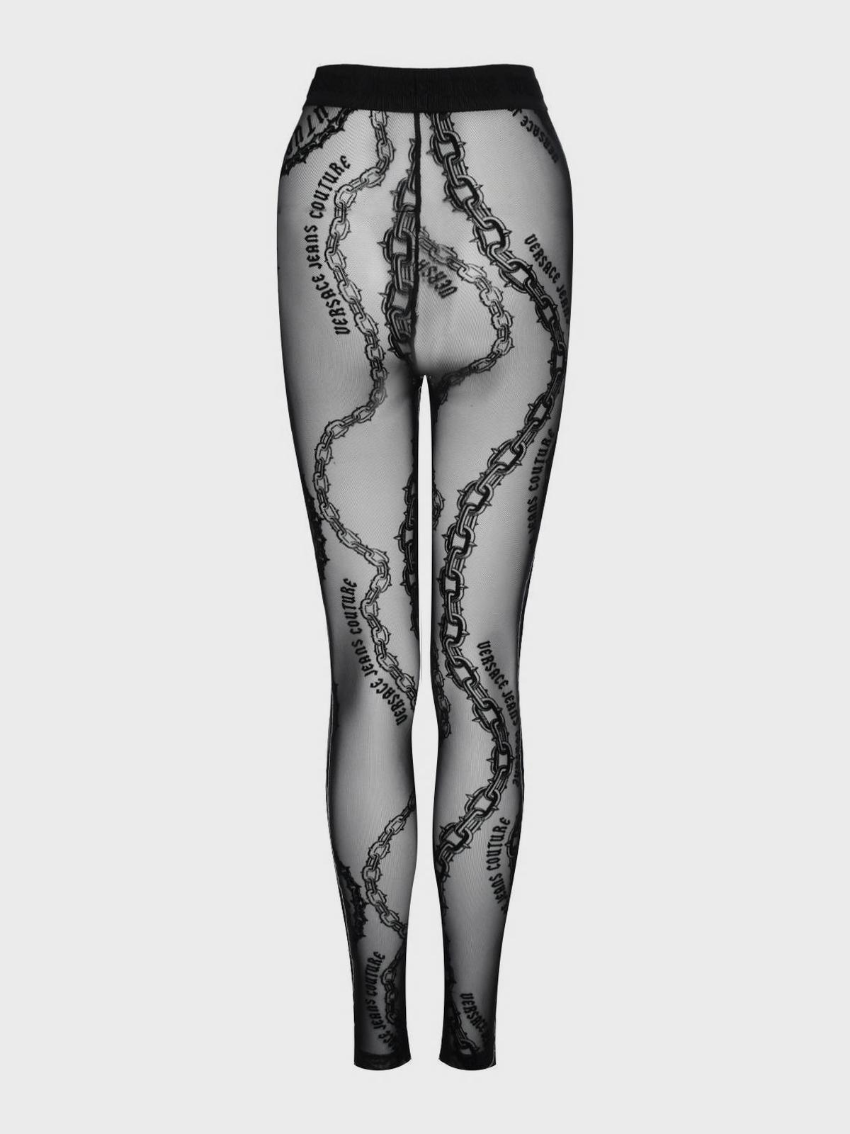 Леггинсы из сетчатого тюля с цепями и лого