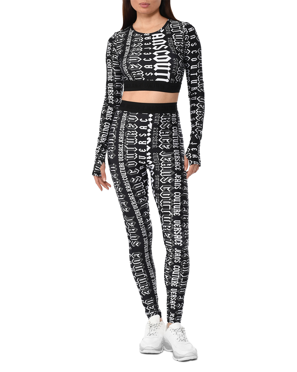 Леггинсы с черно-белой монограммой бренда