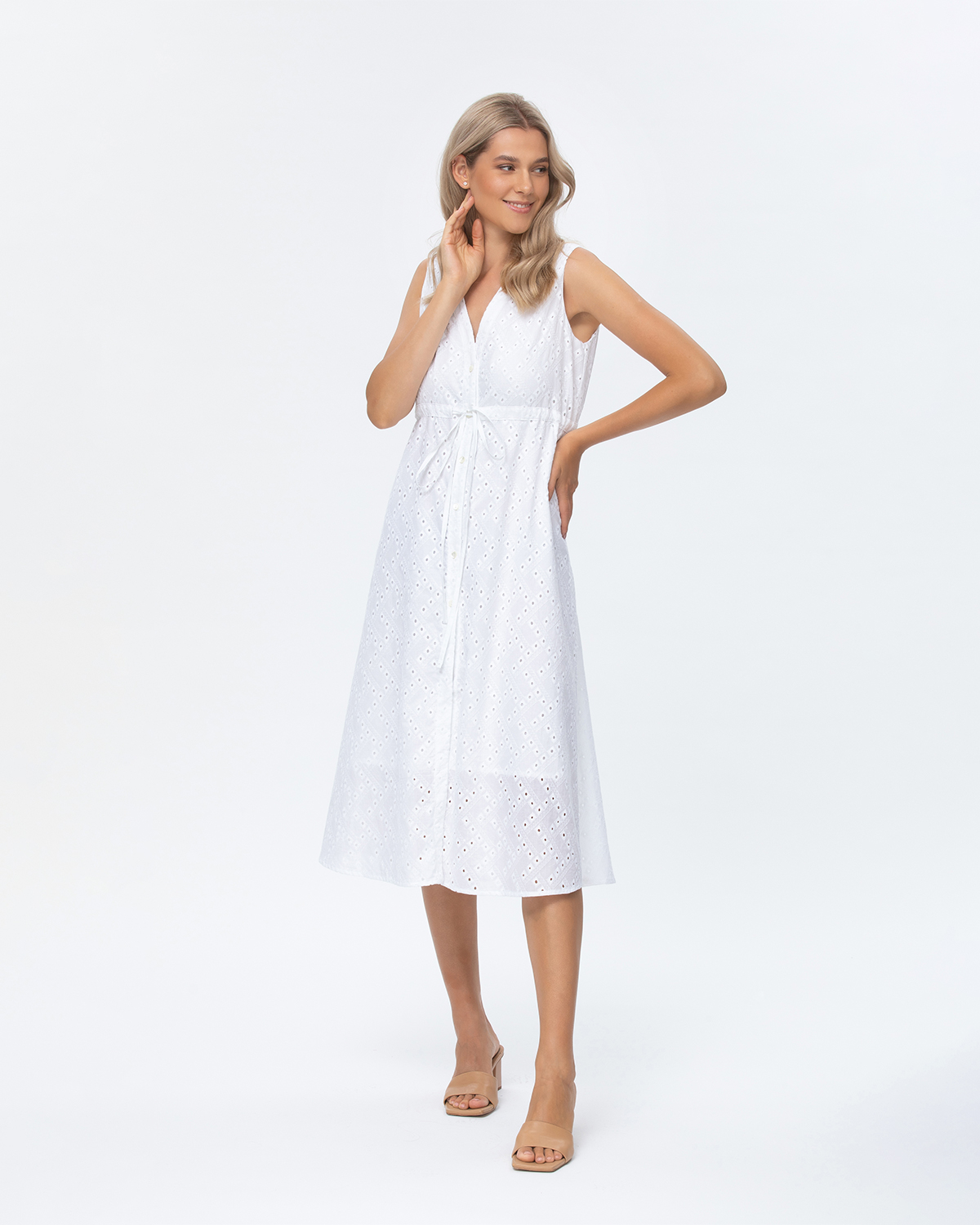 Главная / Женские коллекции / Одежда / Платья / Pietro Brunelli / Белое платье с кулиской на талии