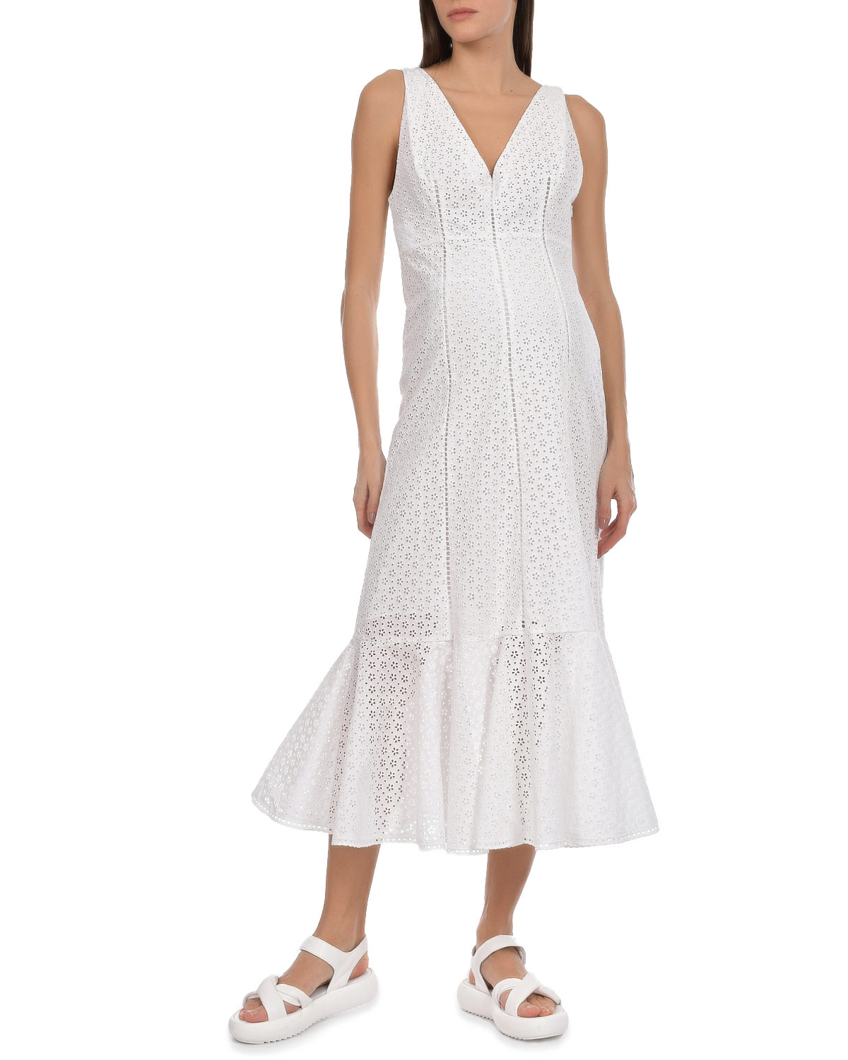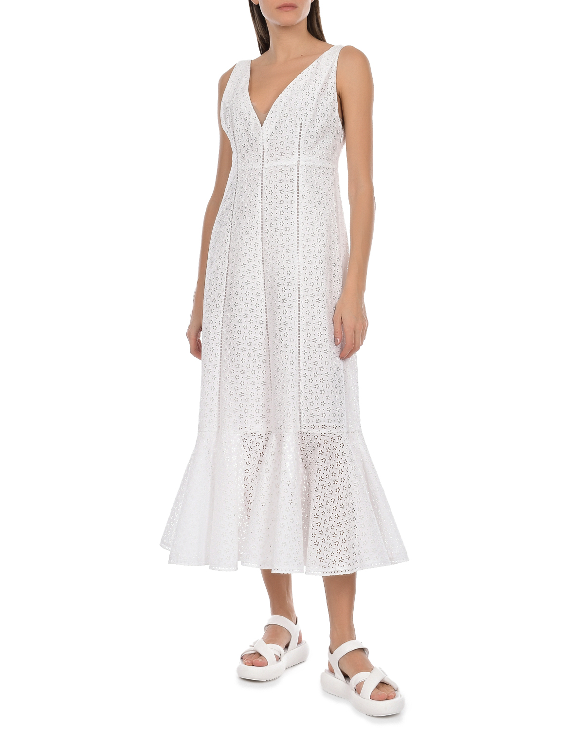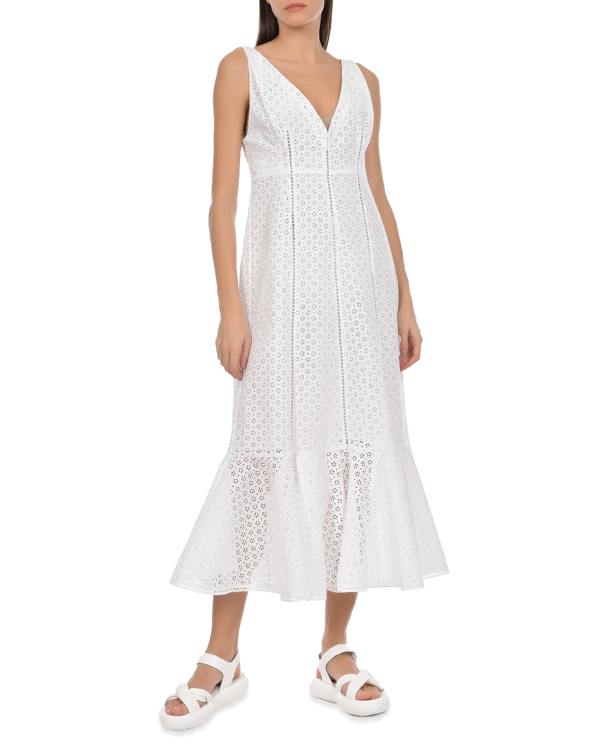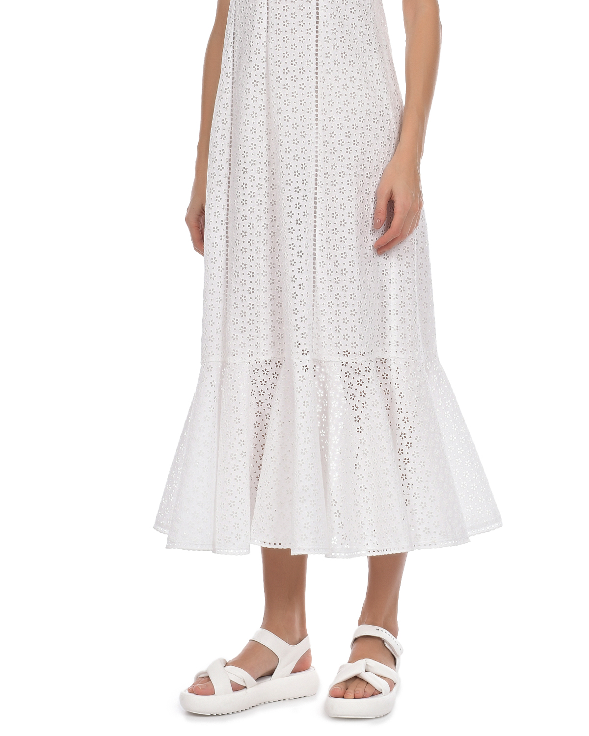 Белое платье с рюшей