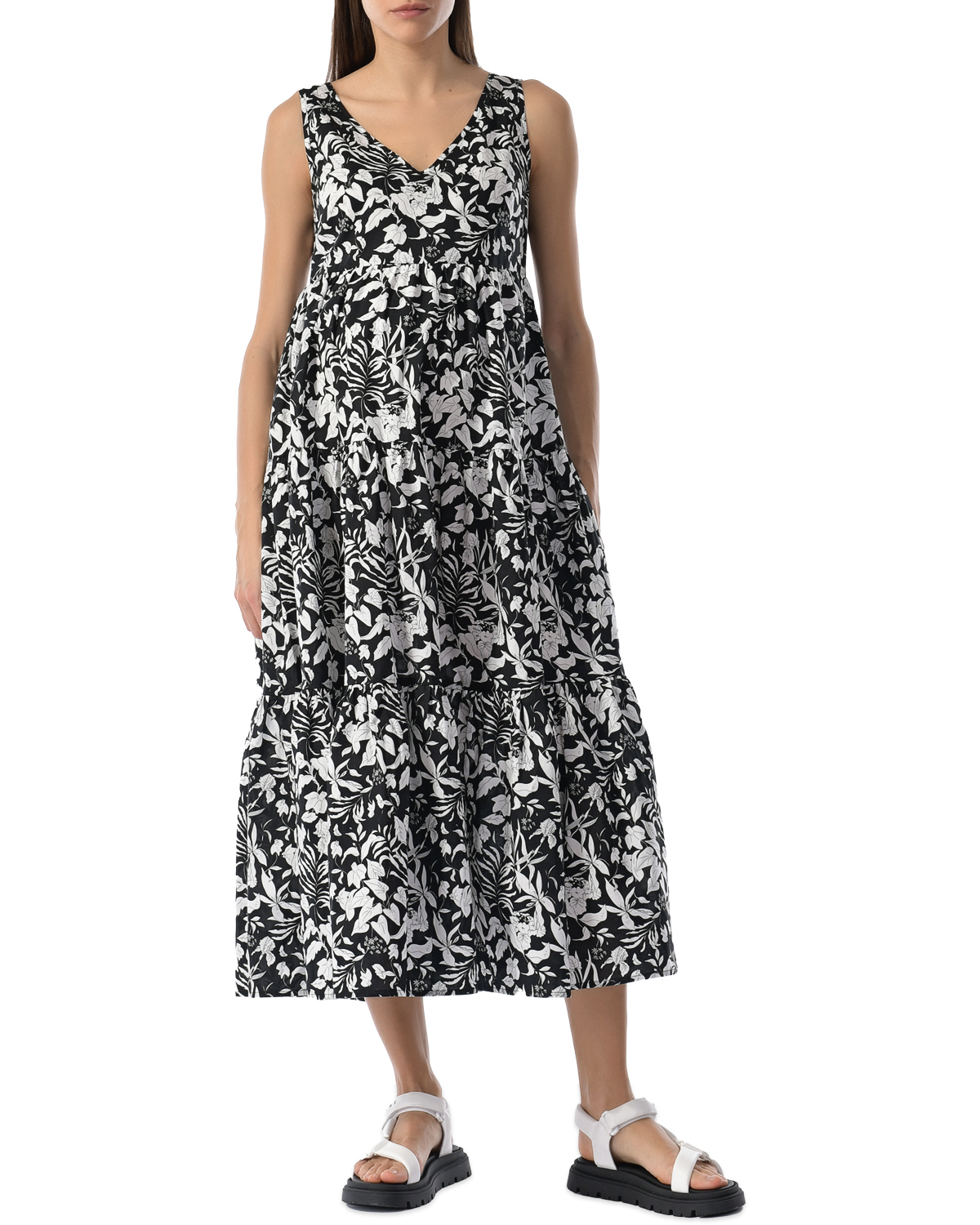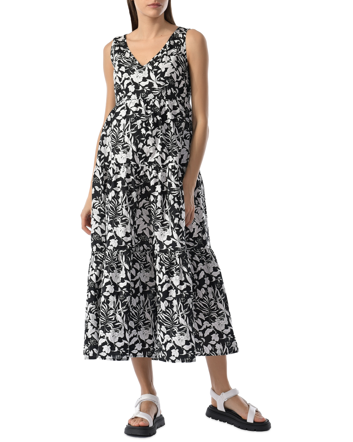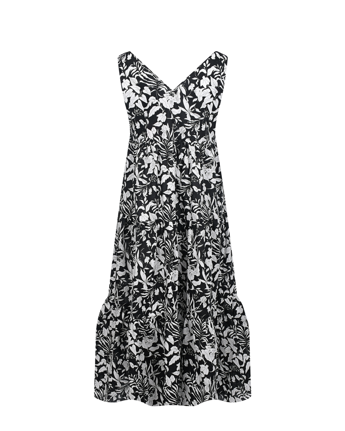 Черное платье с белым цветочным принтом