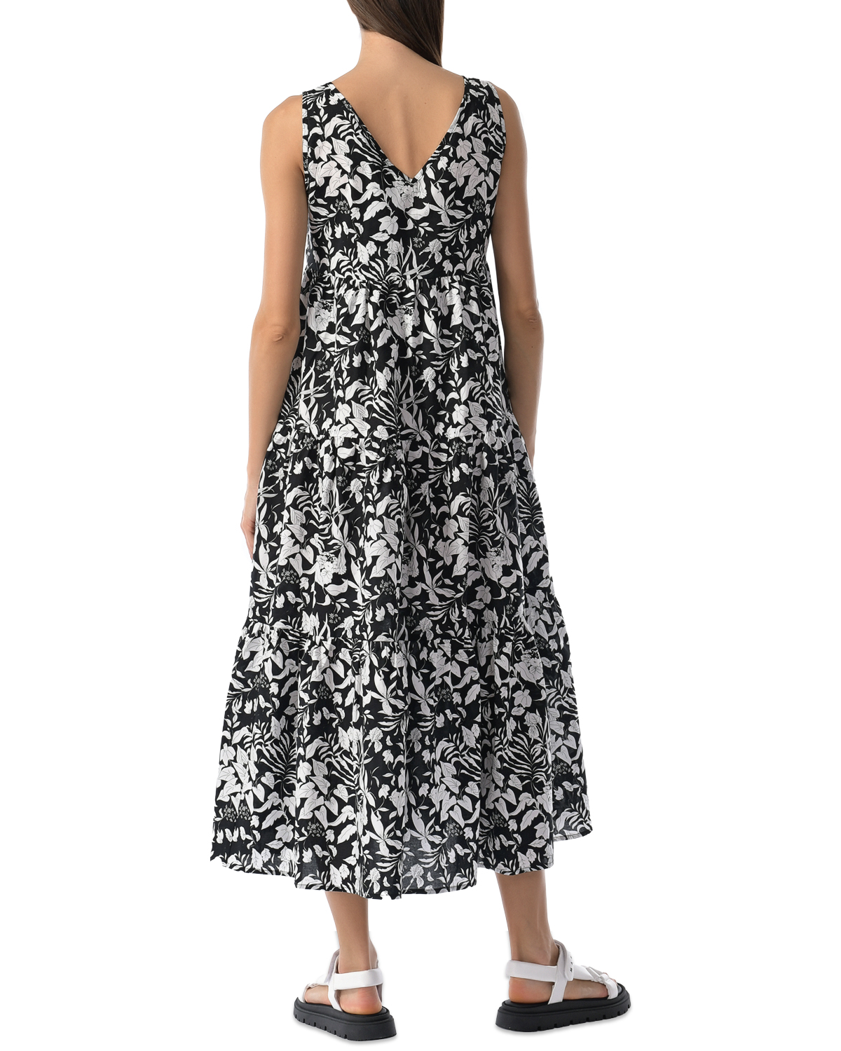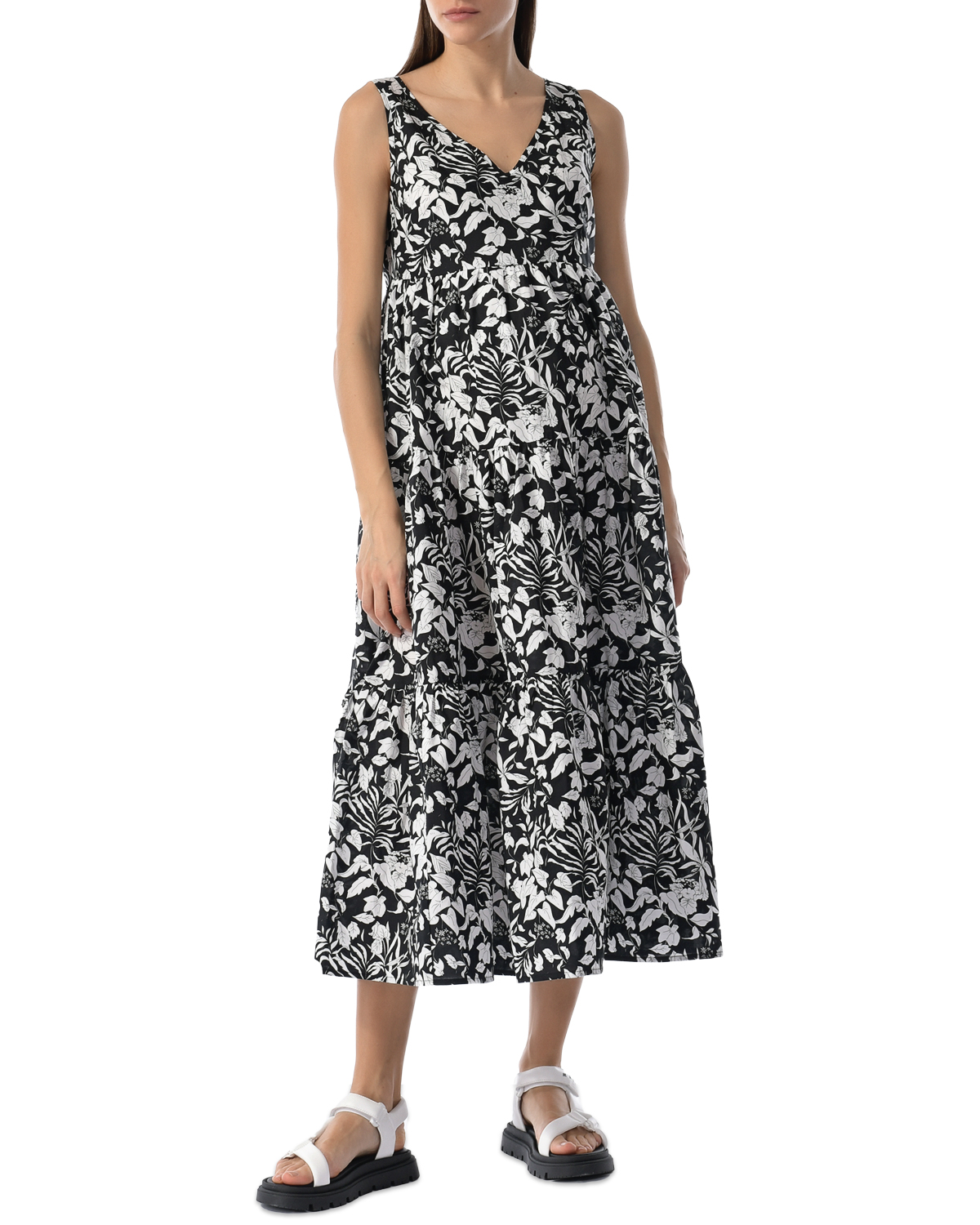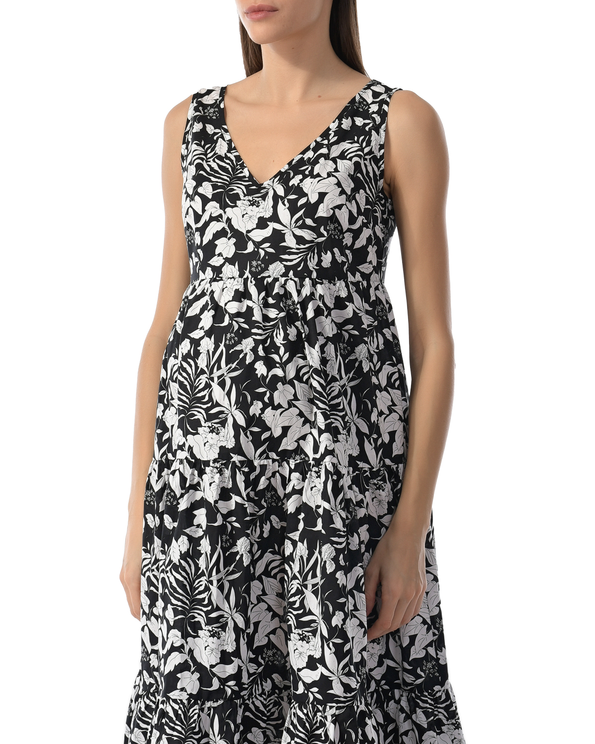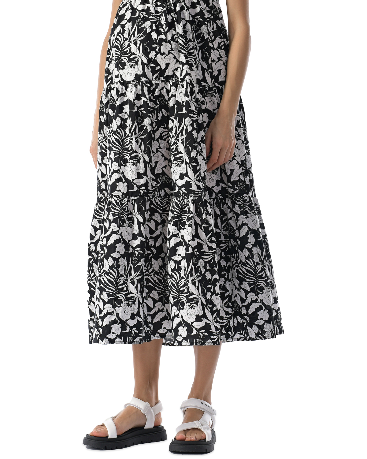 Черное платье с белым цветочным принтом