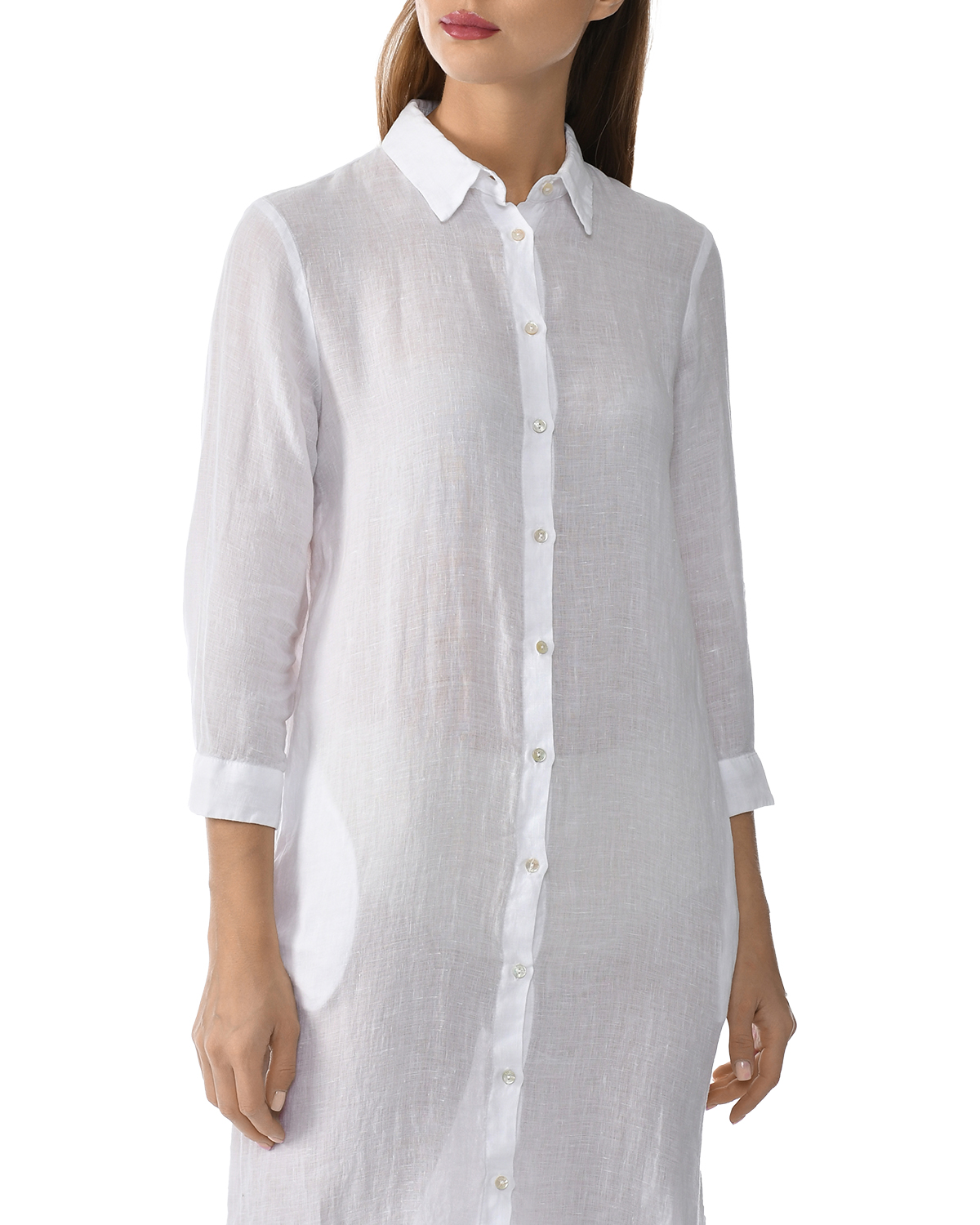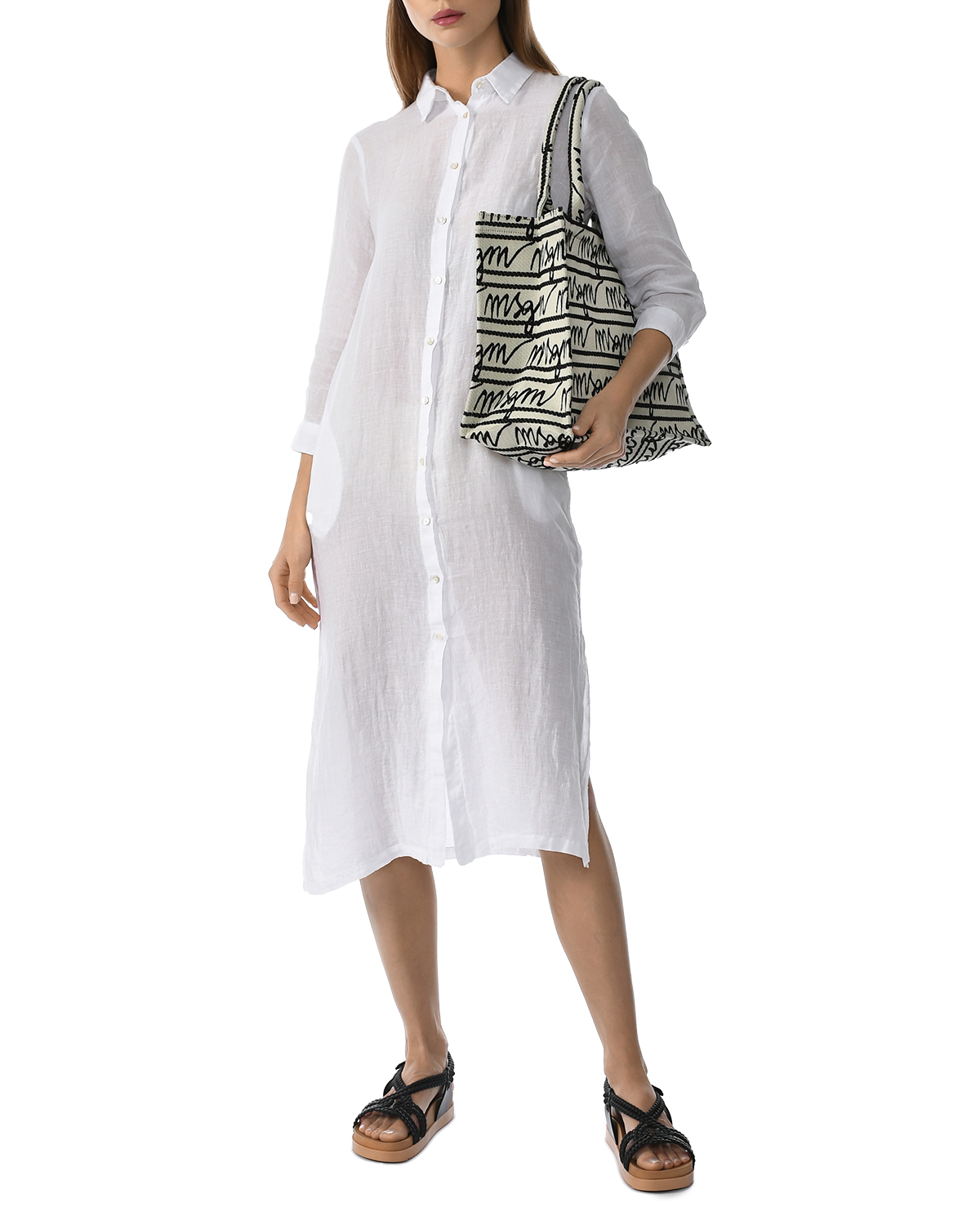 Платье-рубашка с разрезами по бокам, белое