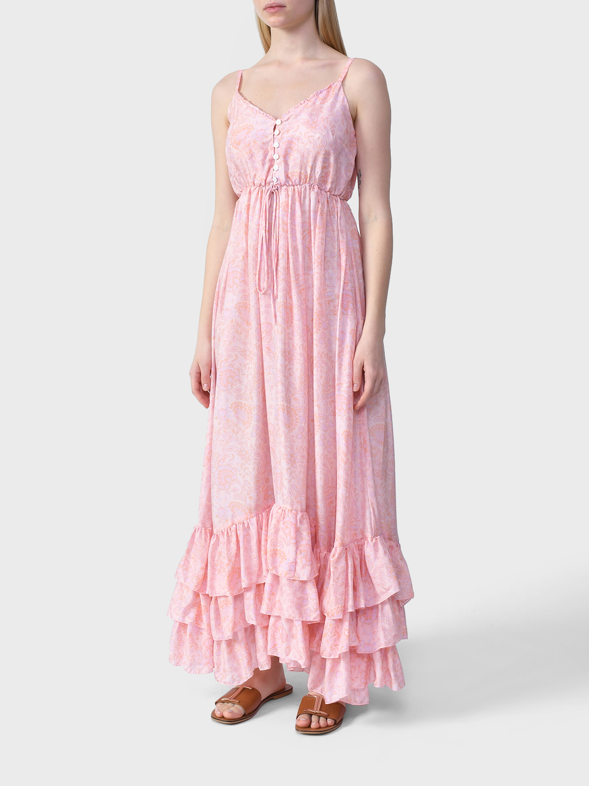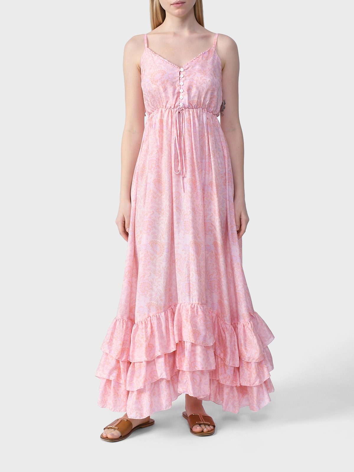 Платье шелковое с оборками, розовое