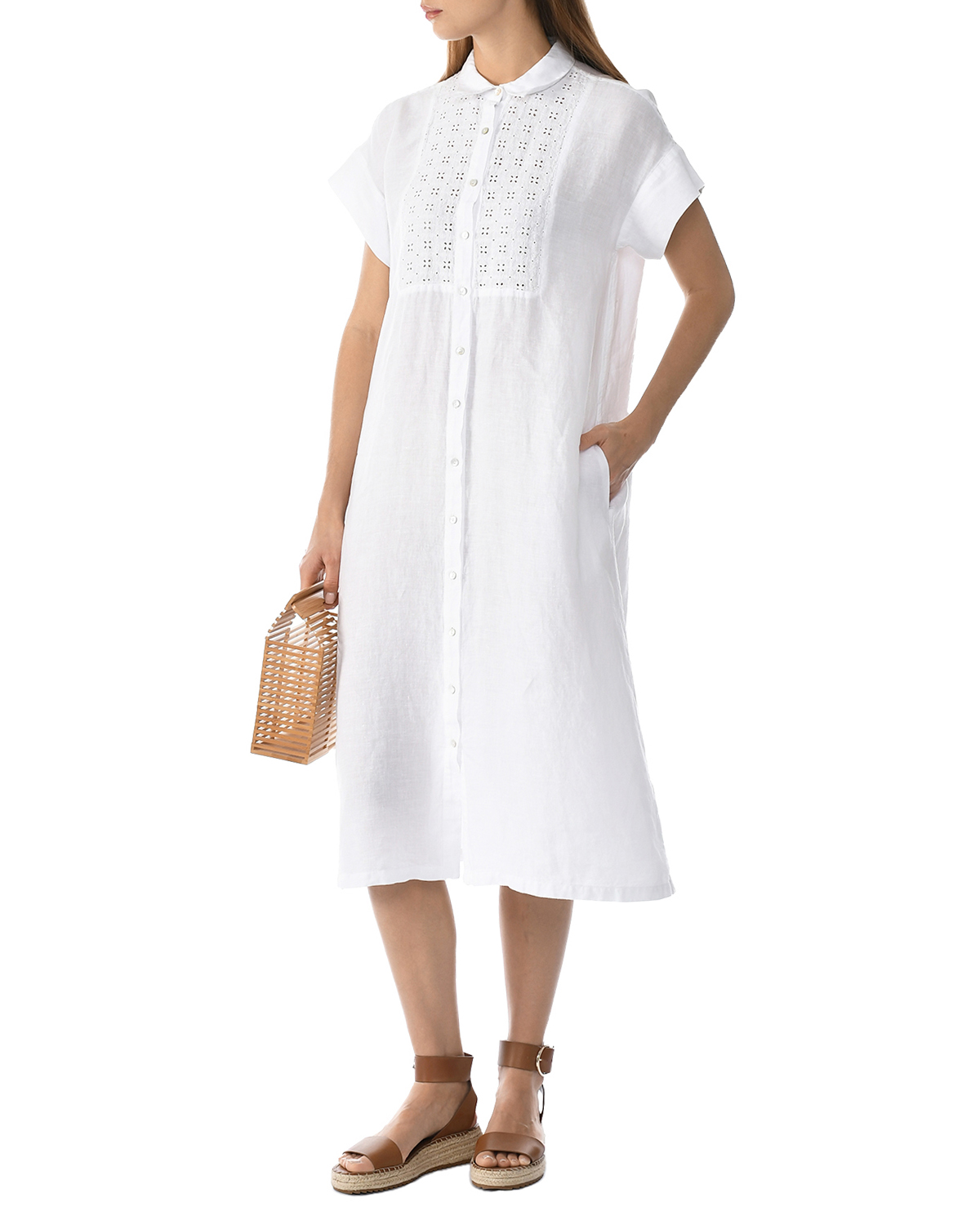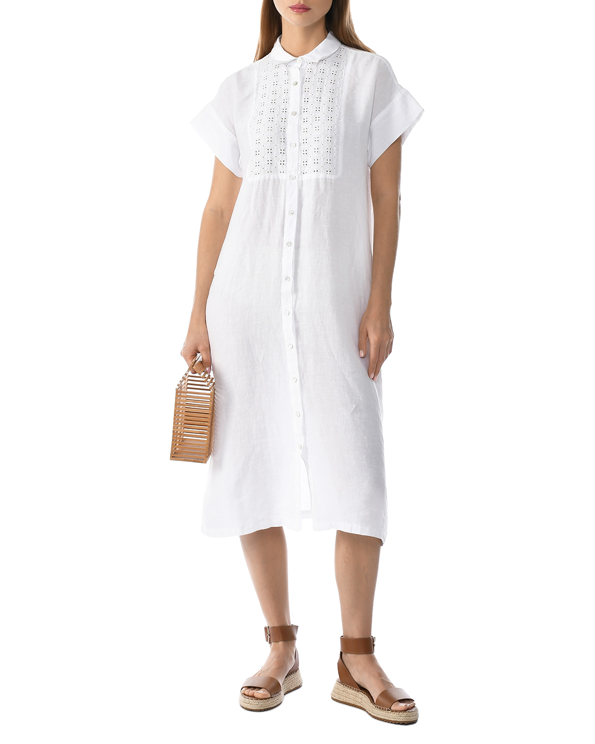Главная / Женские коллекции / Одежда / Платья / Платья изо льна / 120% Lino / Платье рубашкой с декором макраме, белое