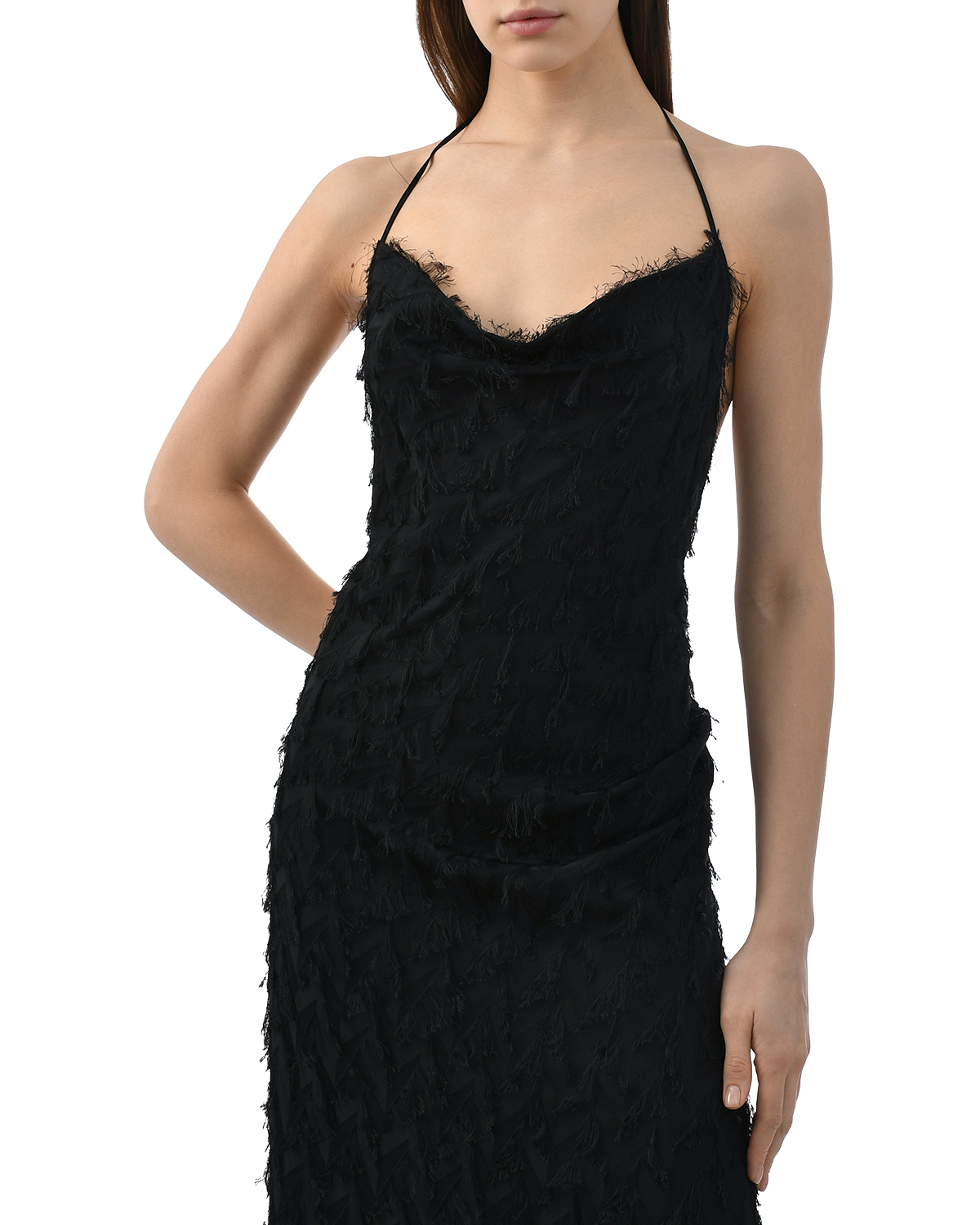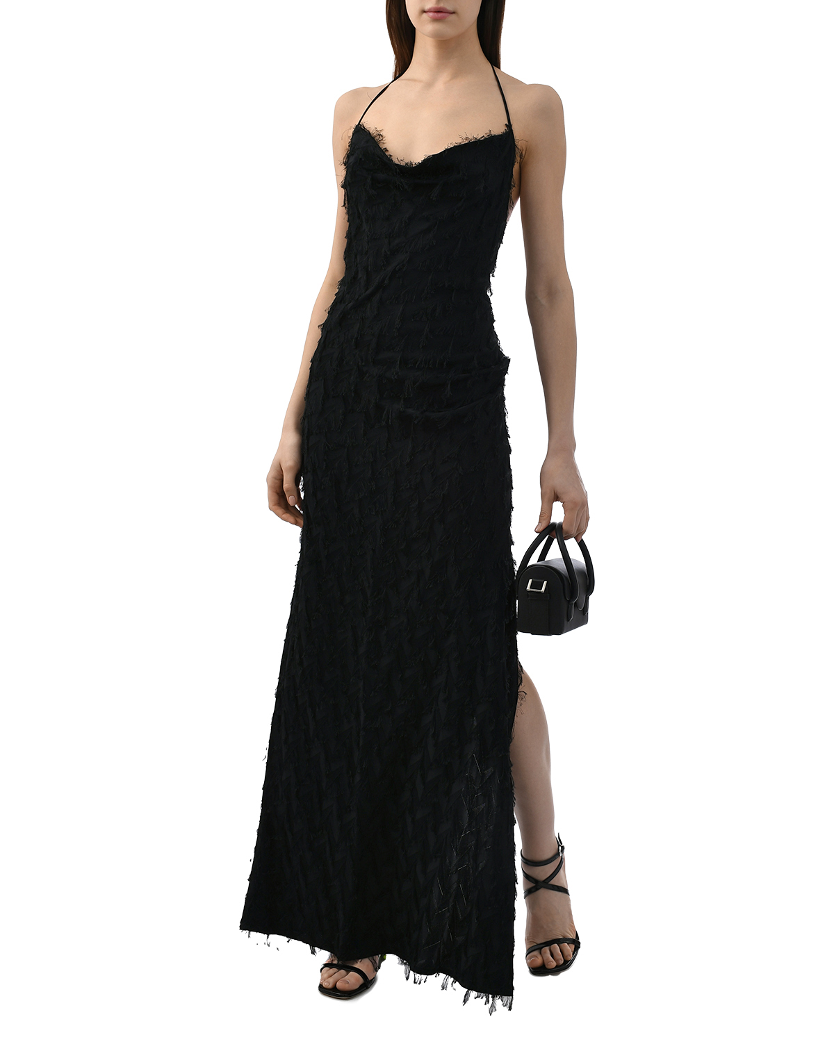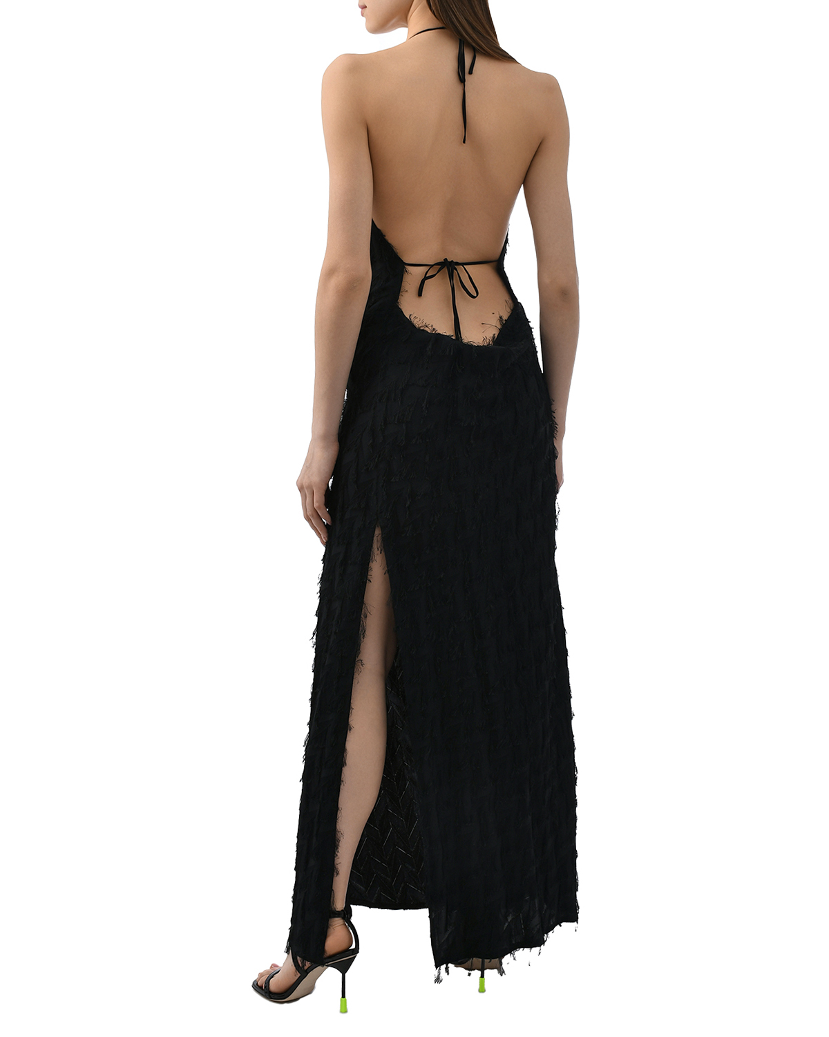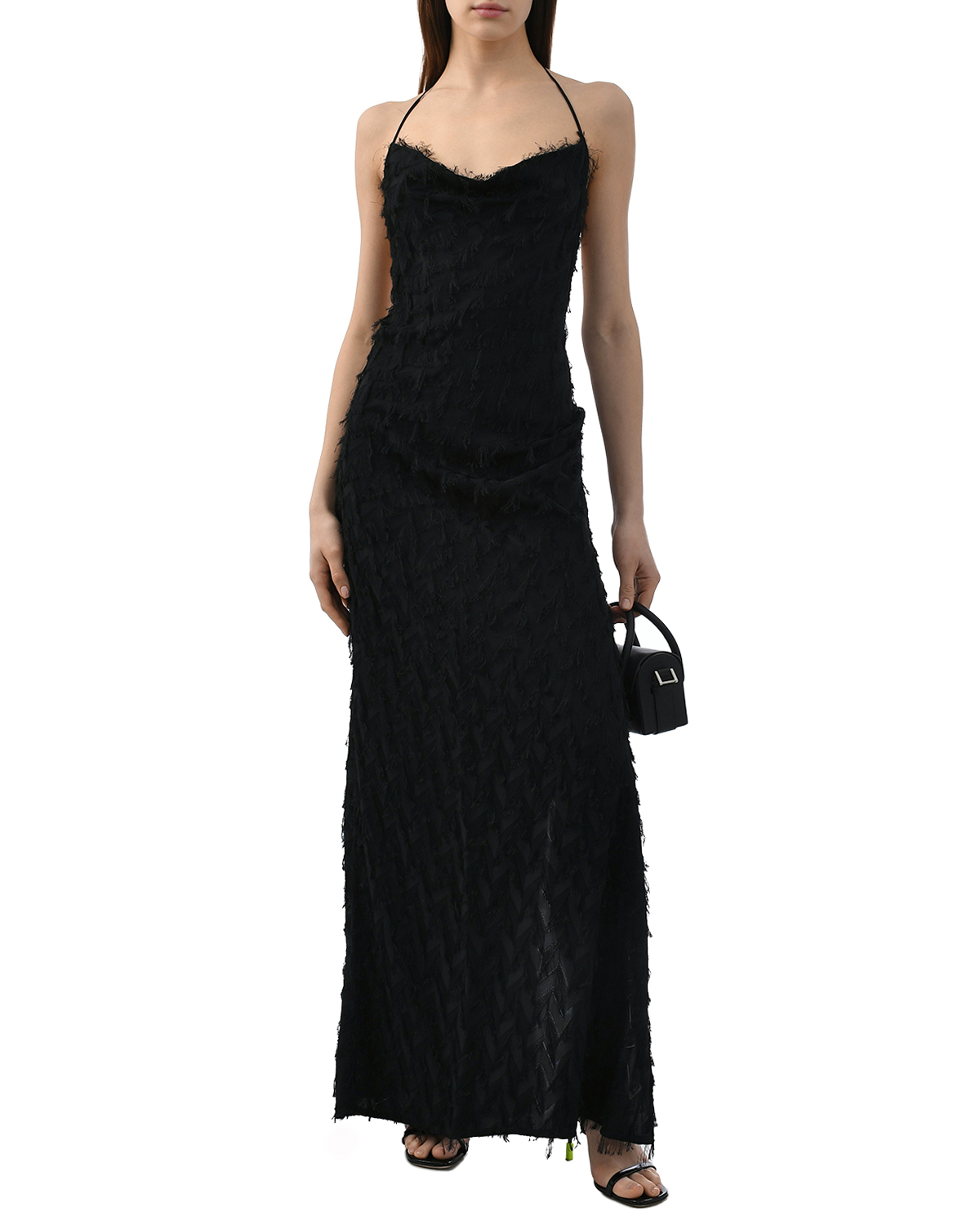 Платье макси с завязками на шее, черное