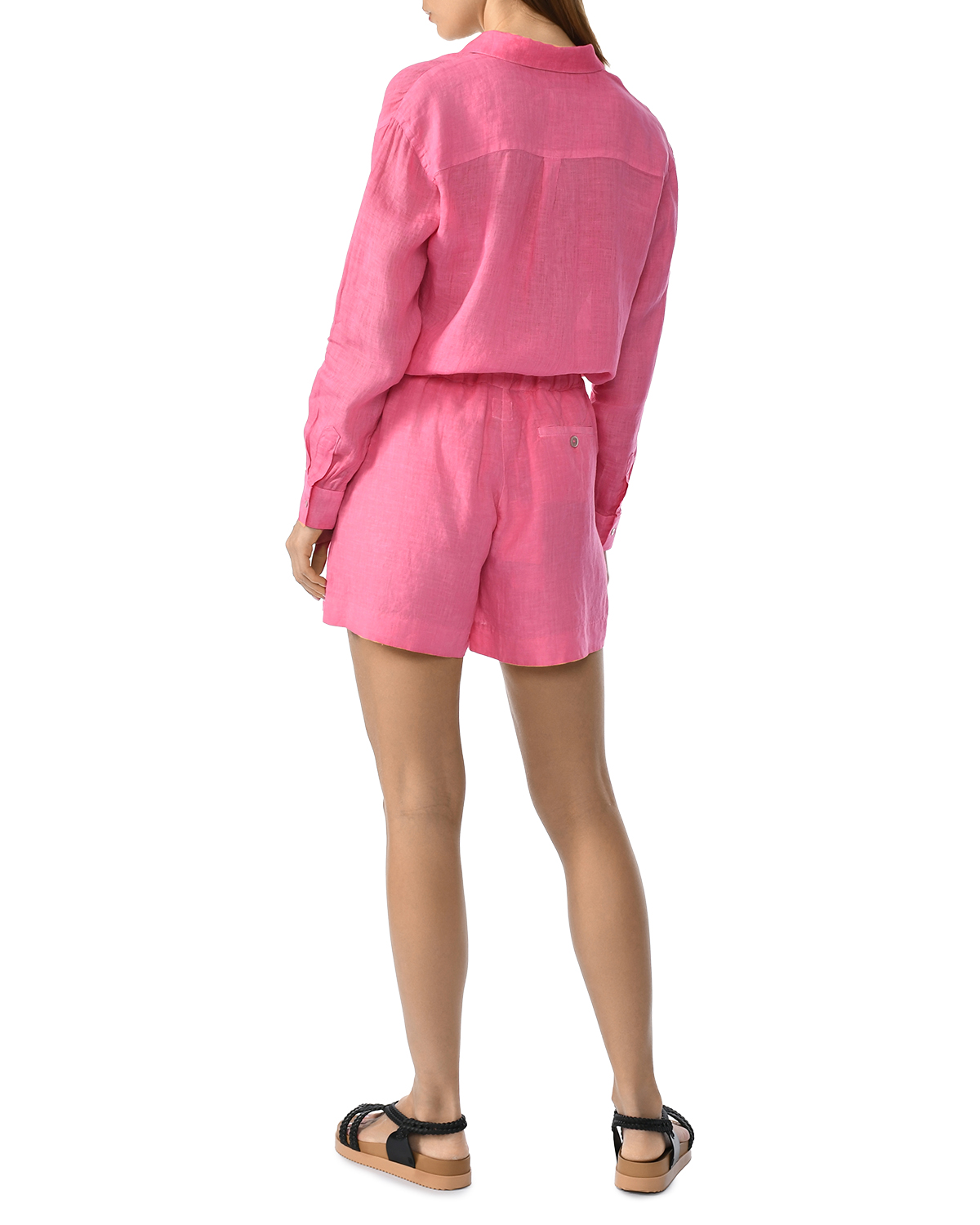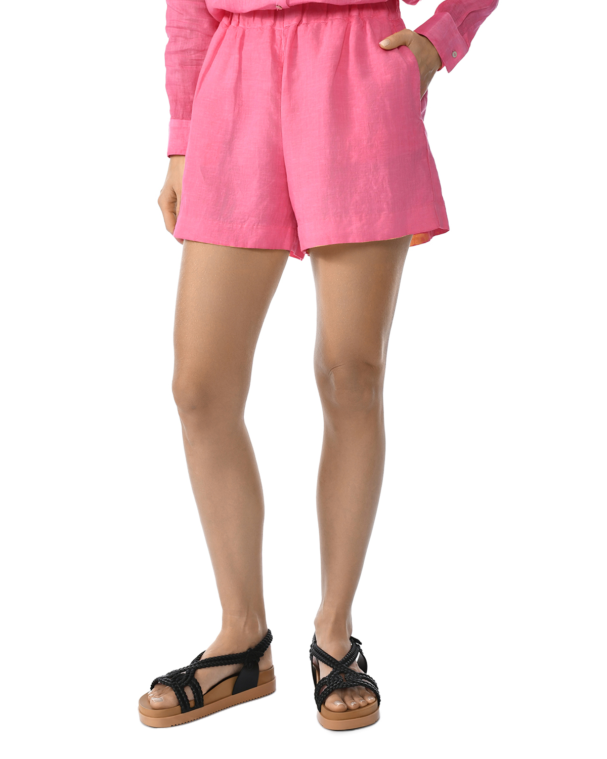 Льняные шорты с поясом на резинке, фуксия