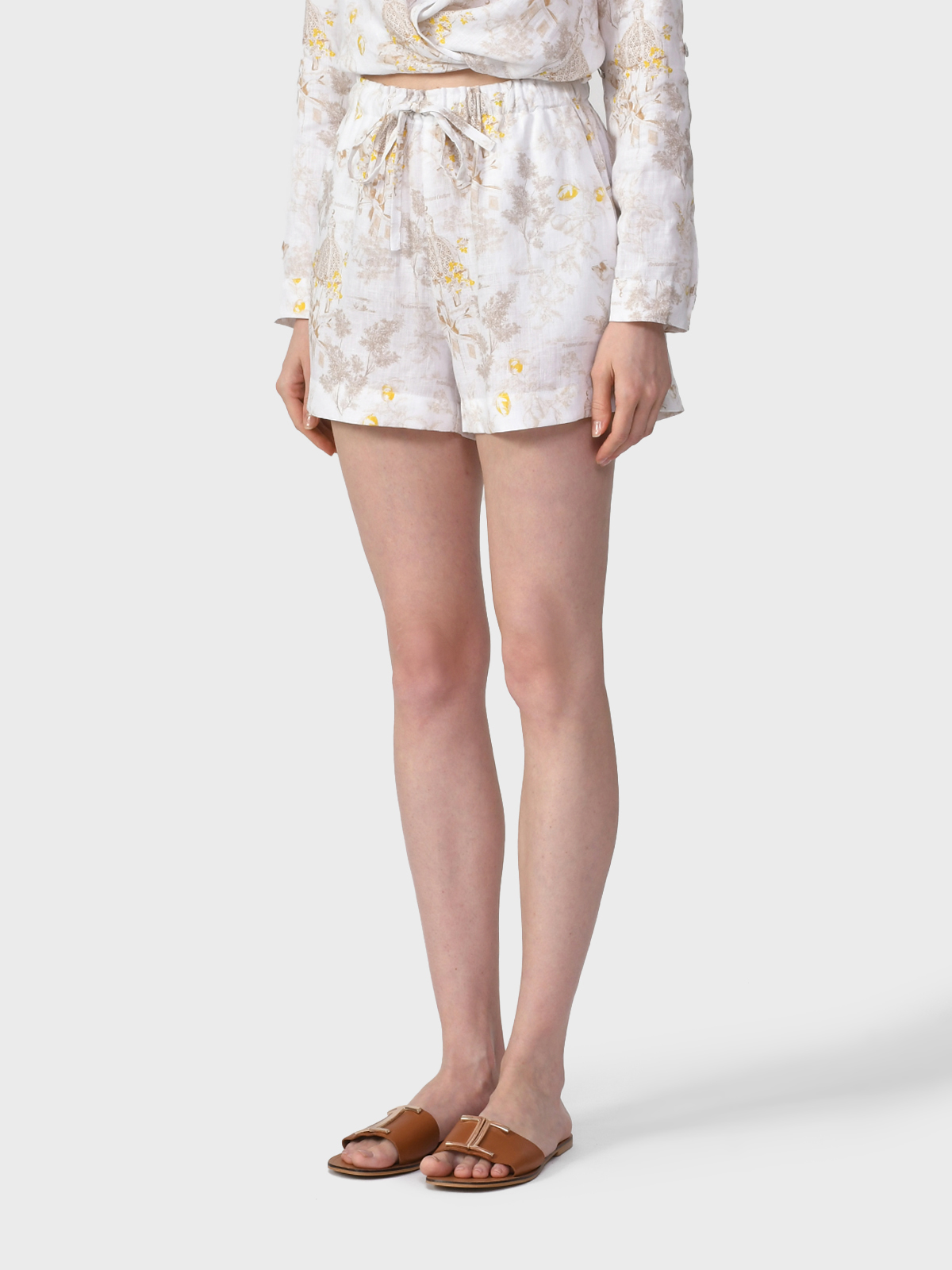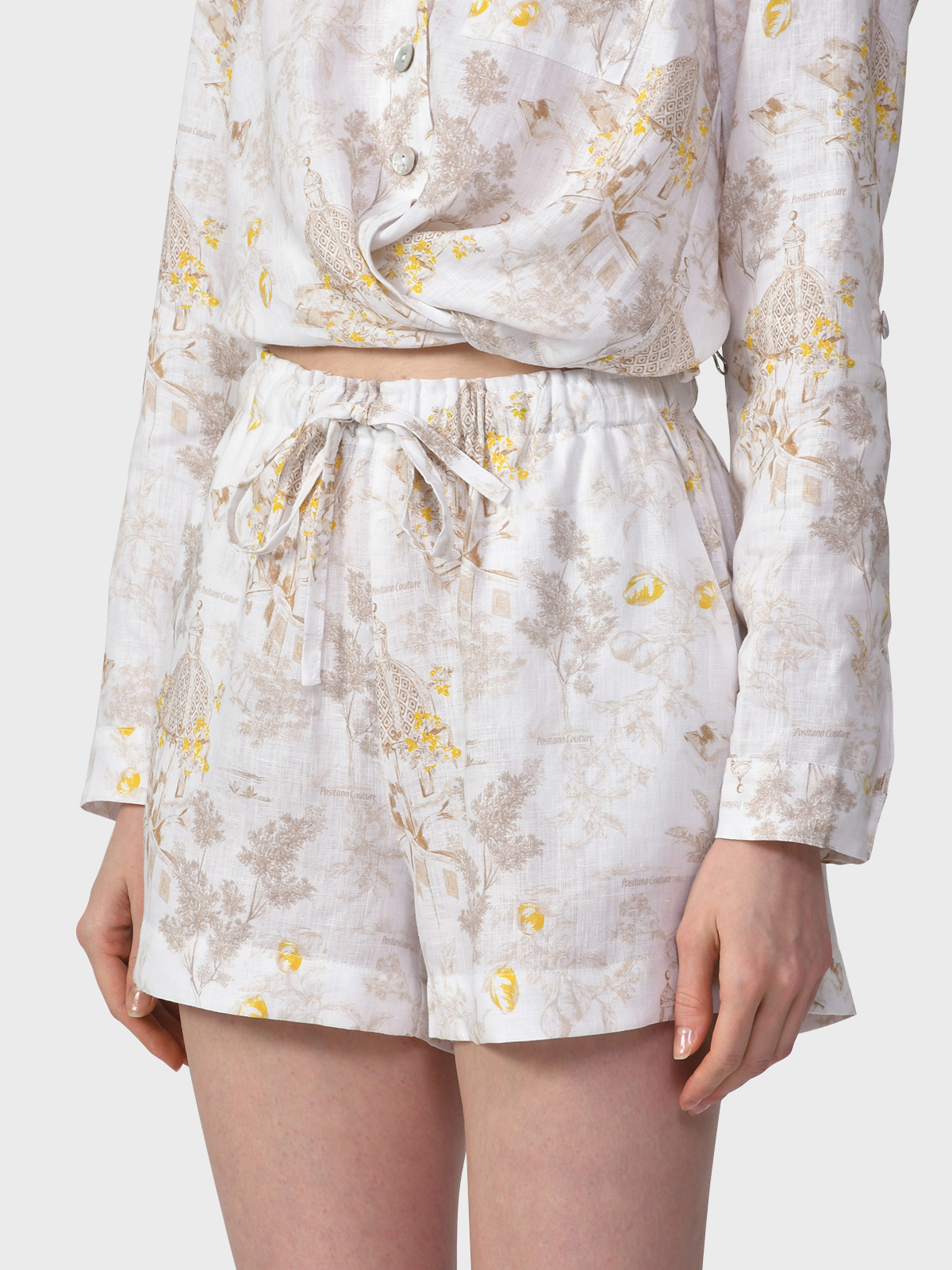 Главная / Женские коллекции / Одежда / Шорты, Бриджи / Positano Couture / Льняные шорты с принтом Positano