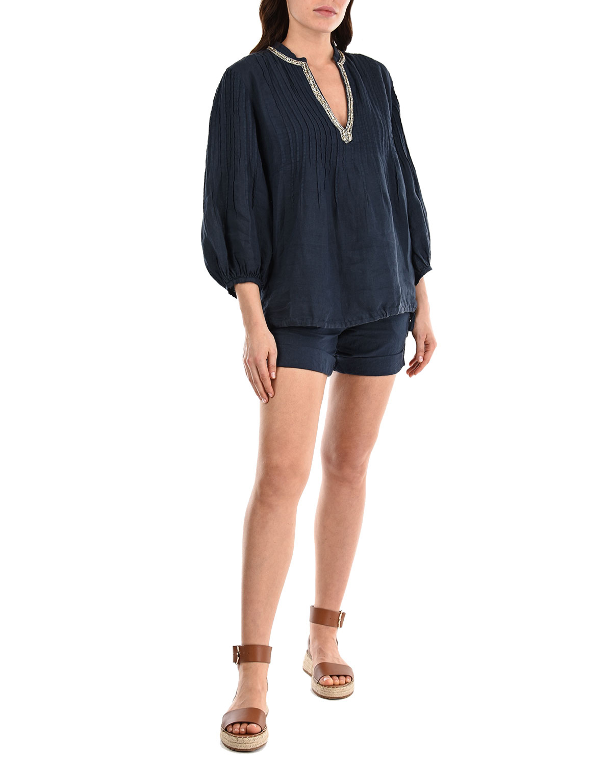 Чистый лен, очень приятный, прохладный материал, обладающий высокой прочностью, отбирается у самых лучших проверенных производителей, окрашивается, на него наносится принт, вышивка, вплоть до использования натуральных камней и бисера. Кроме того, коллекция создается в соответствии с самыми актуальными тенденциями моды.