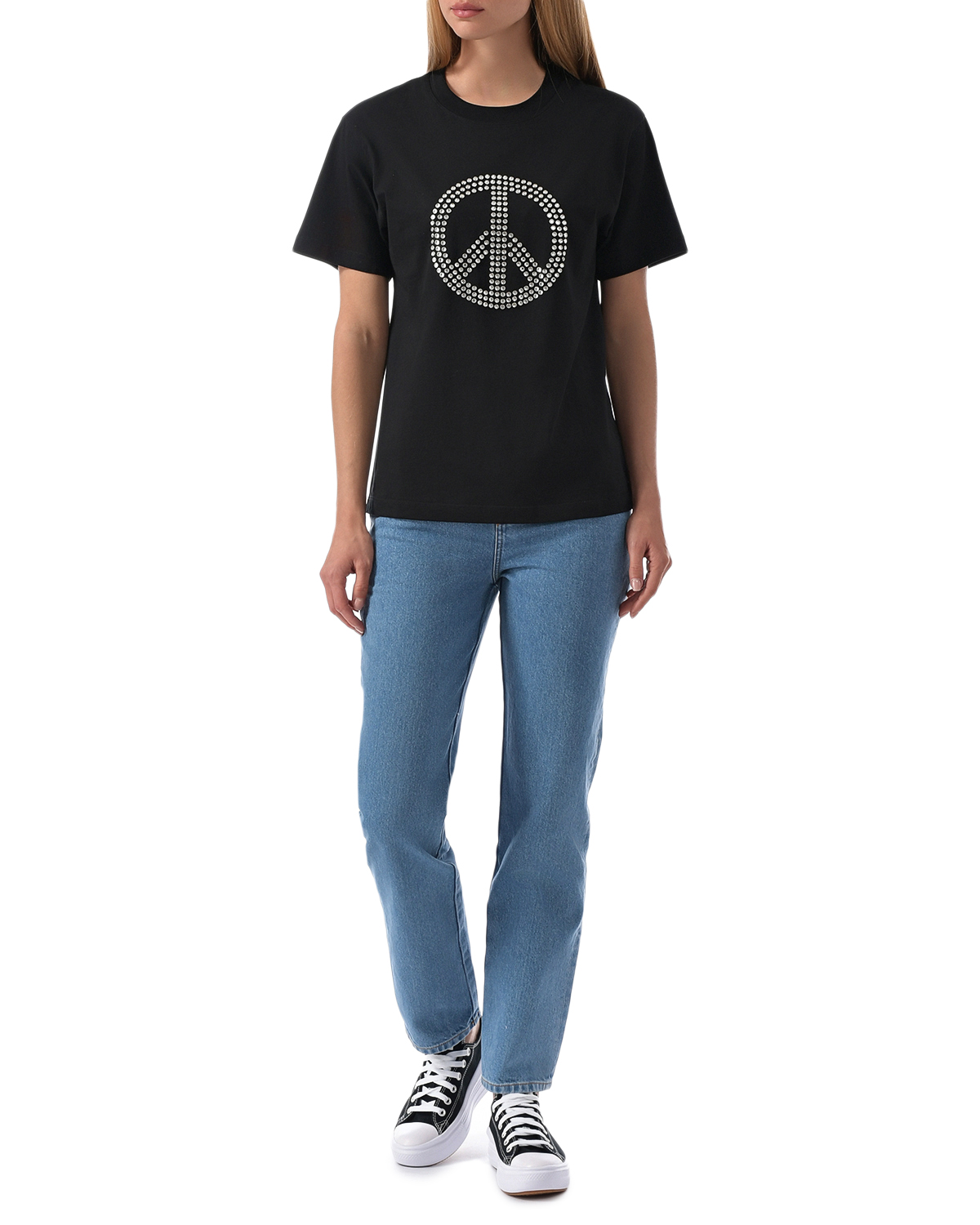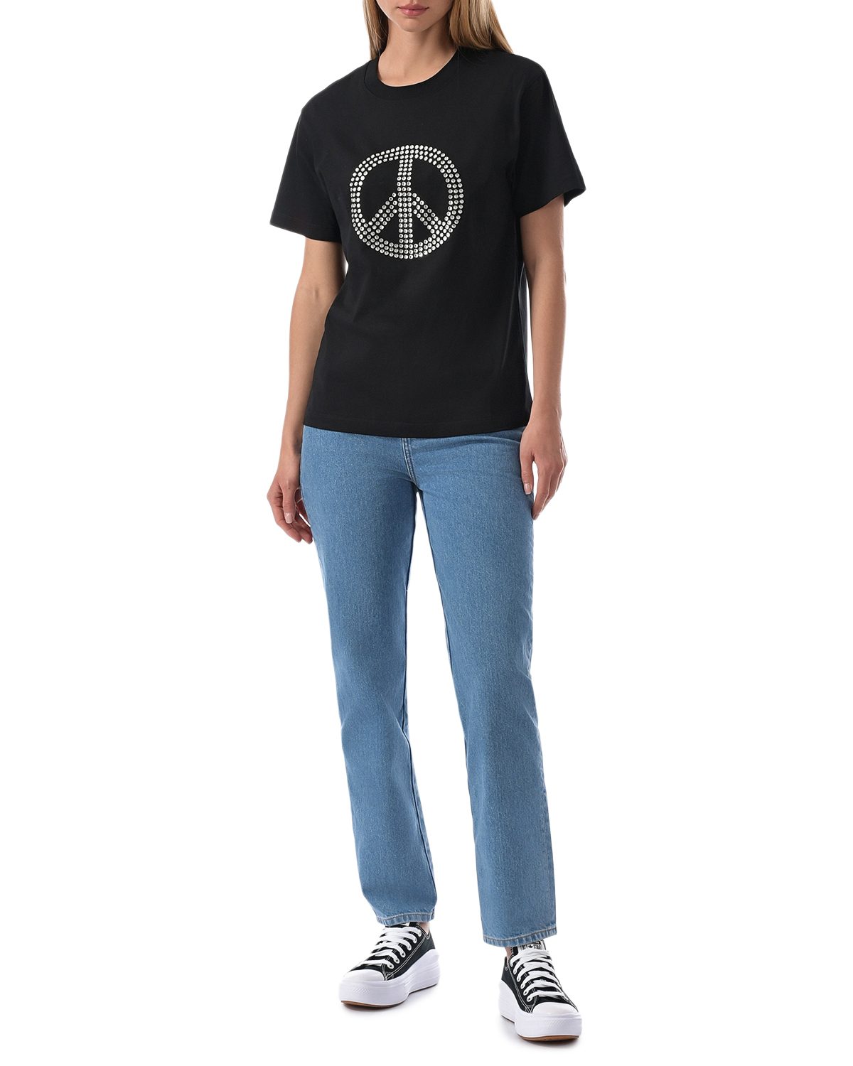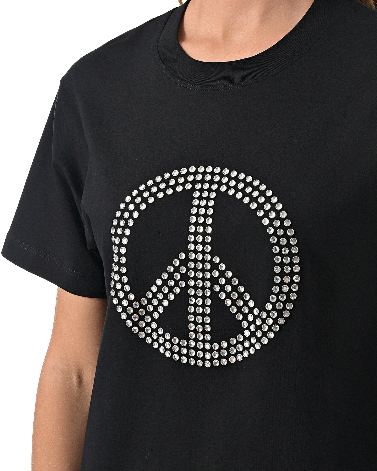 Черная футболка с декором из стразов