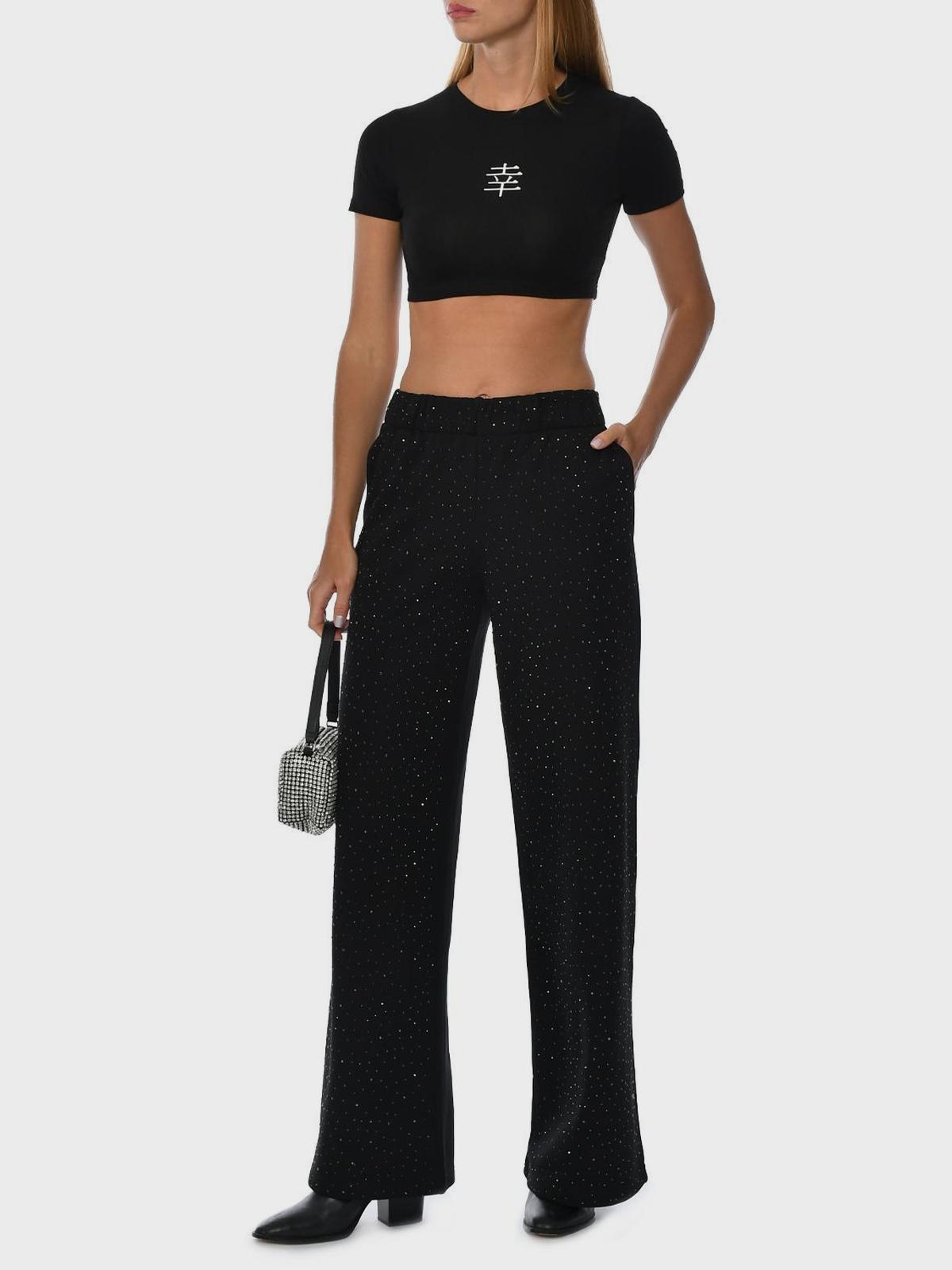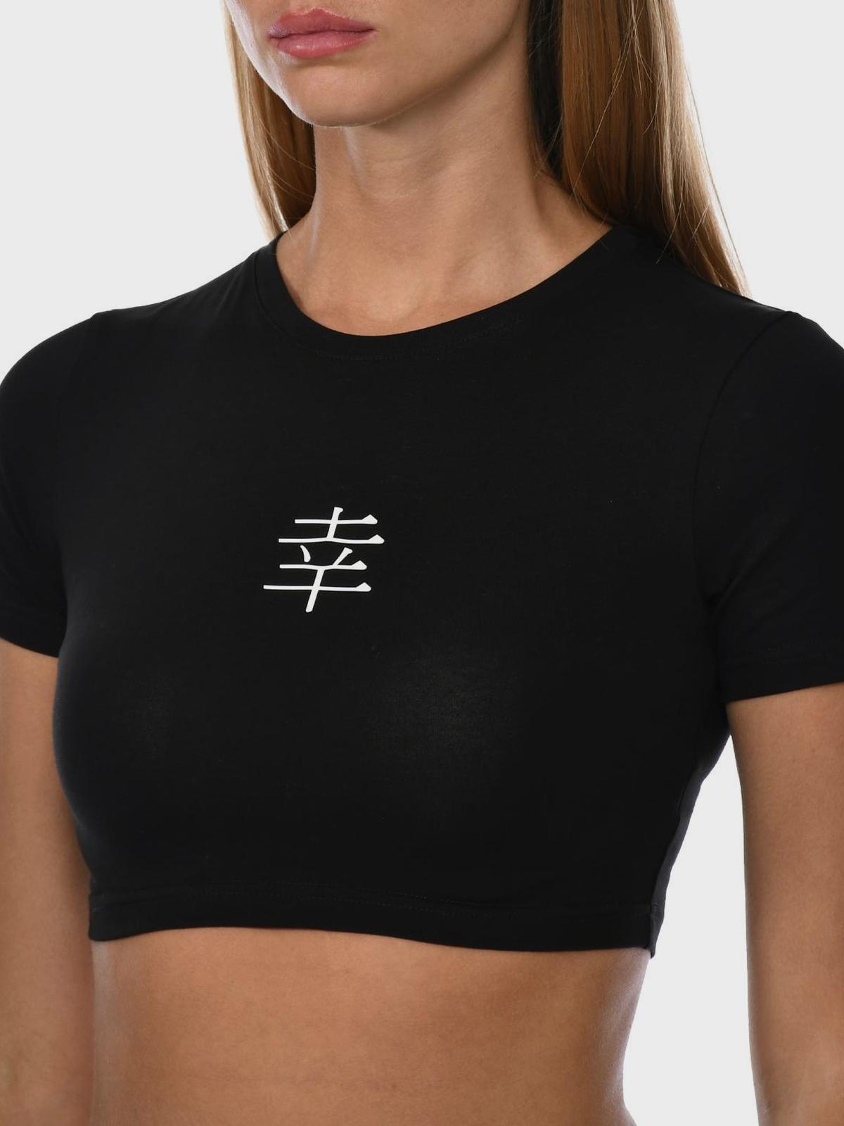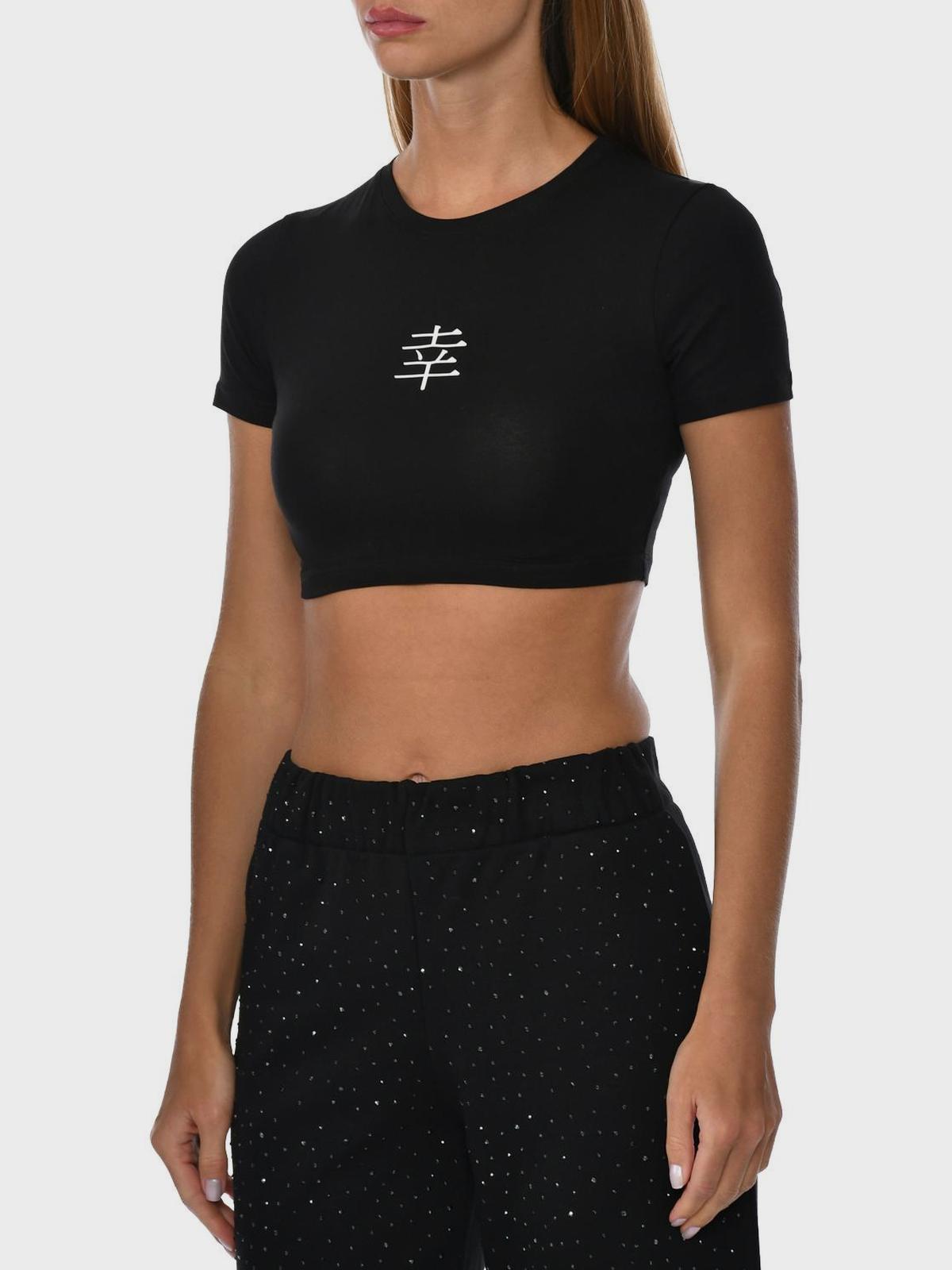 Футболка короткая с иероглифом на груди, черная