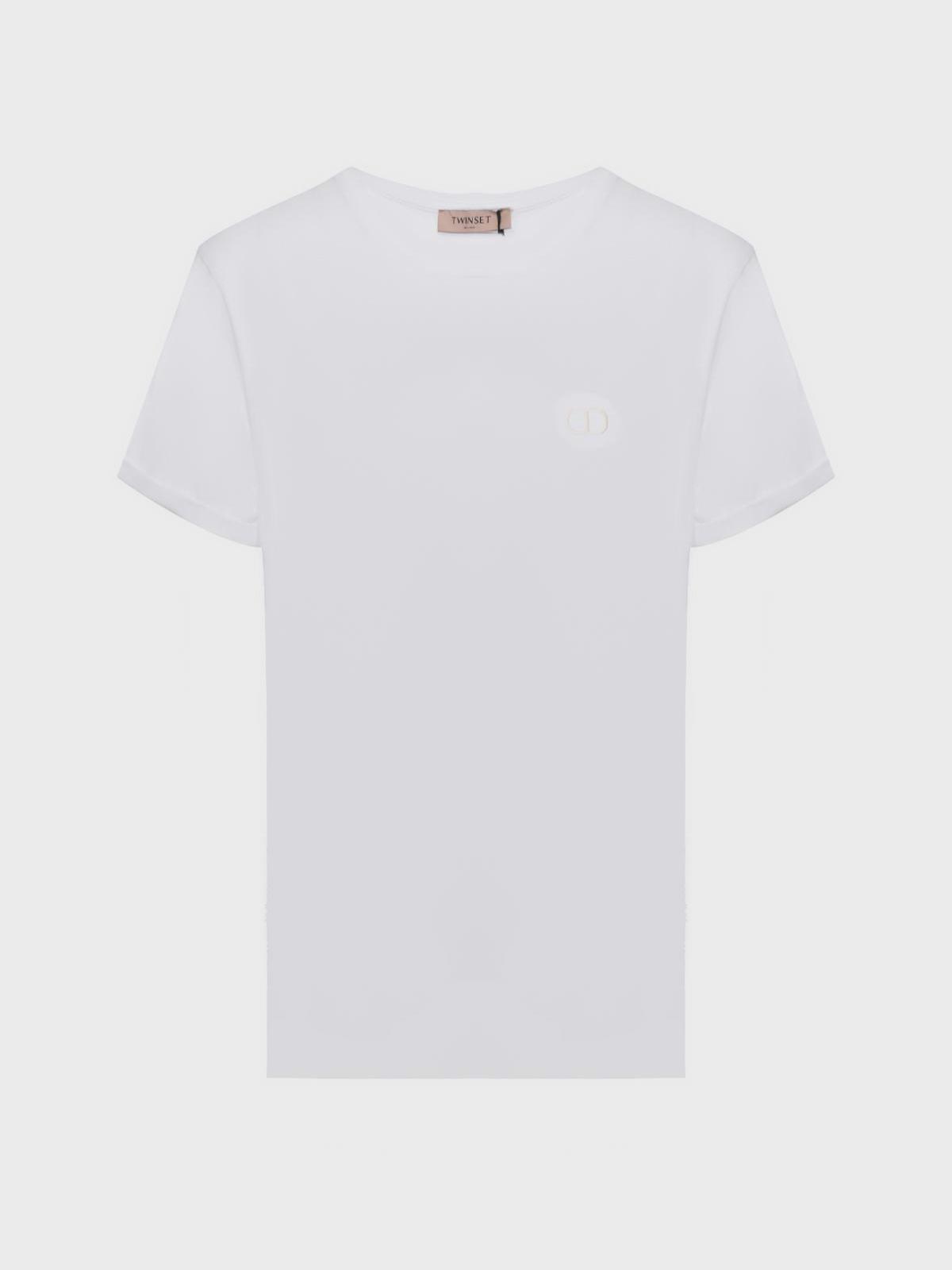 Главная / Женские коллекции / Одежда / Топы, Футболки / Twin Set / Футболка с брошью в виде лого