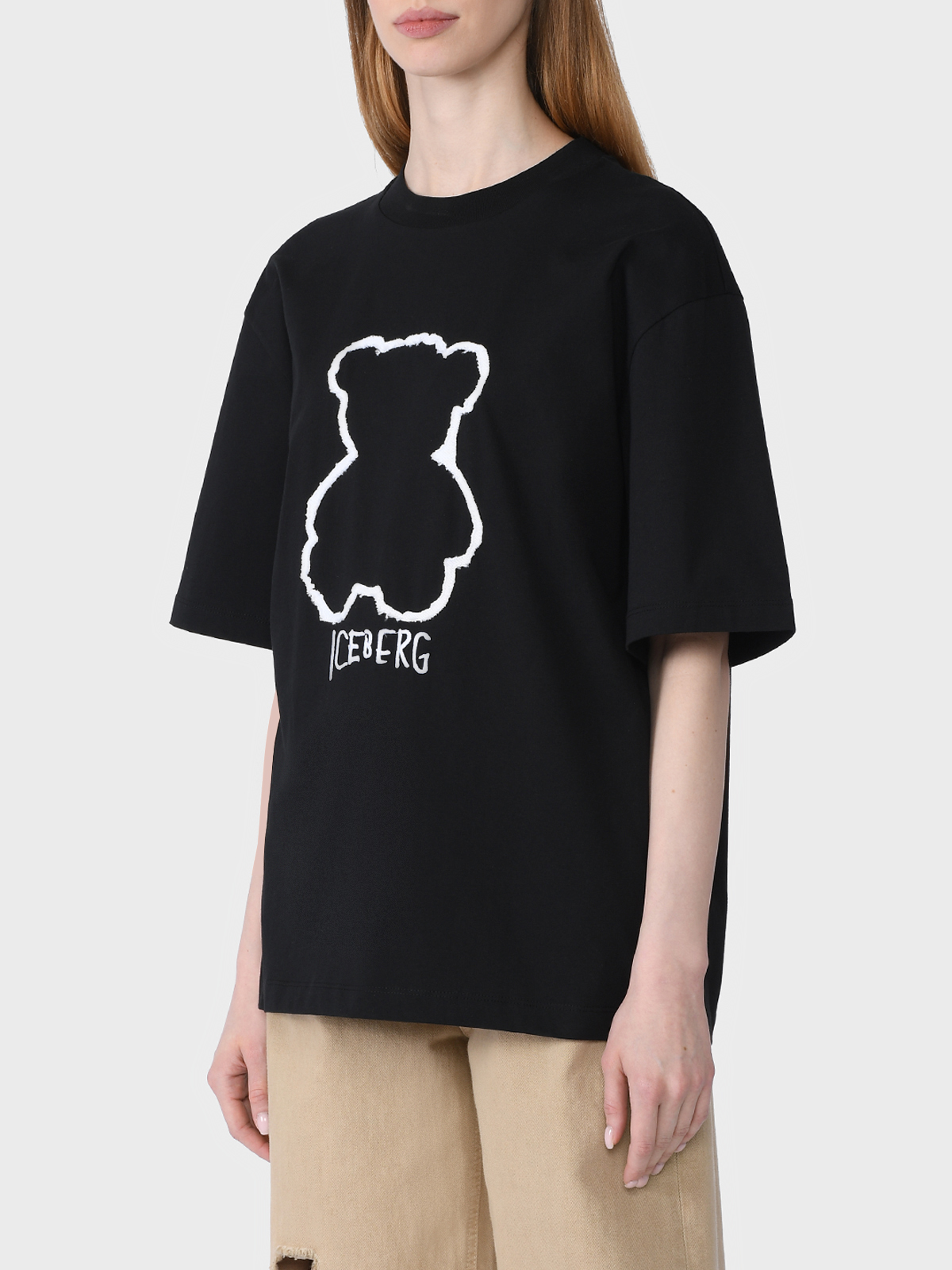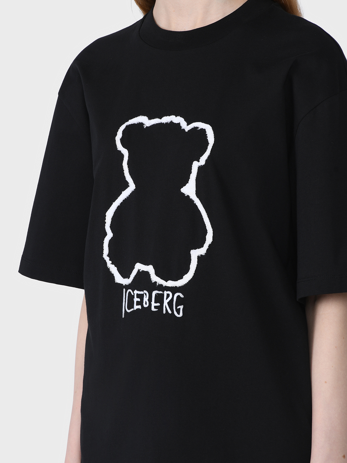 Футболка с декором "медвежонок", черная