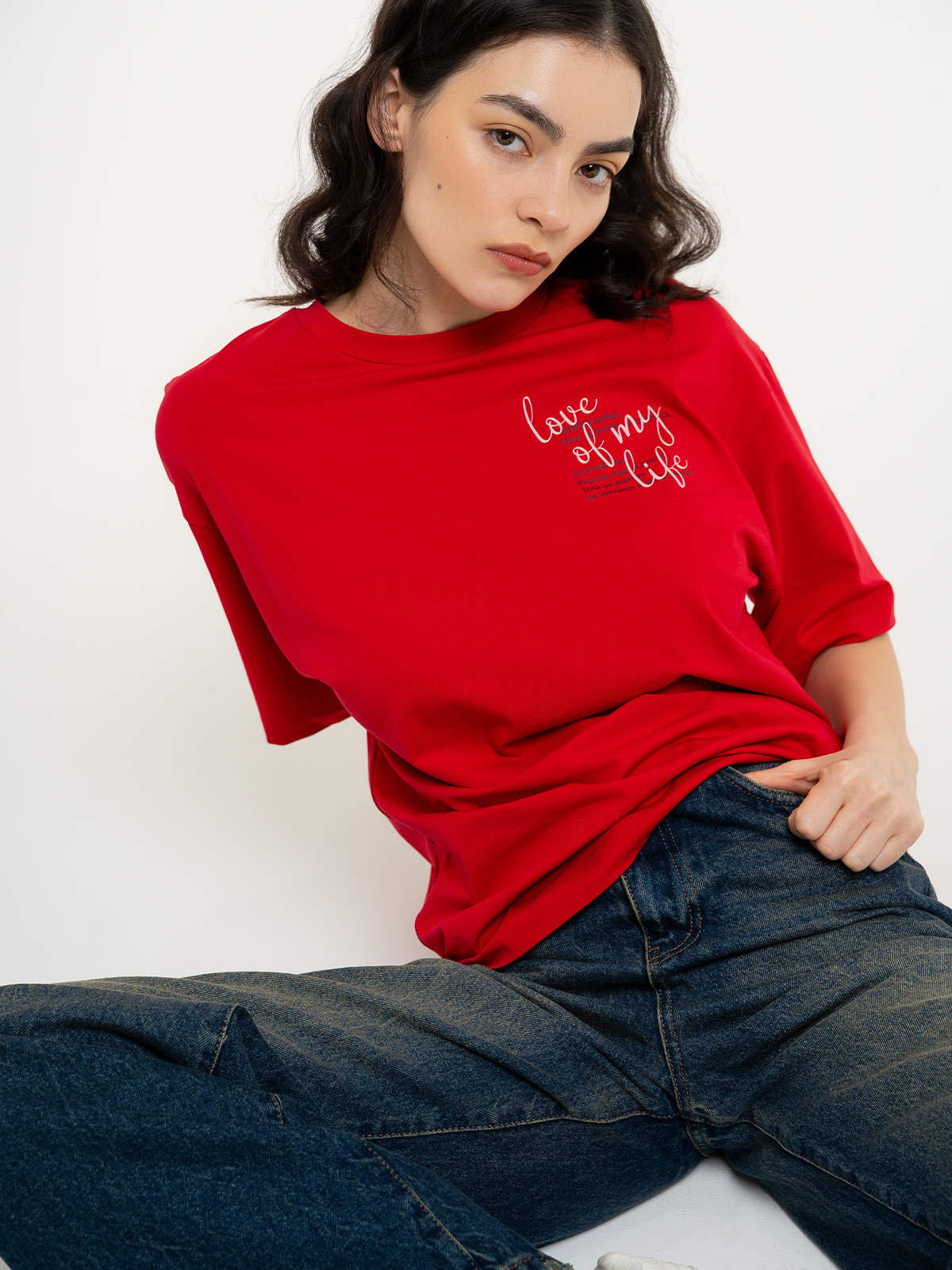 Футболка с текстовым принтом, красная