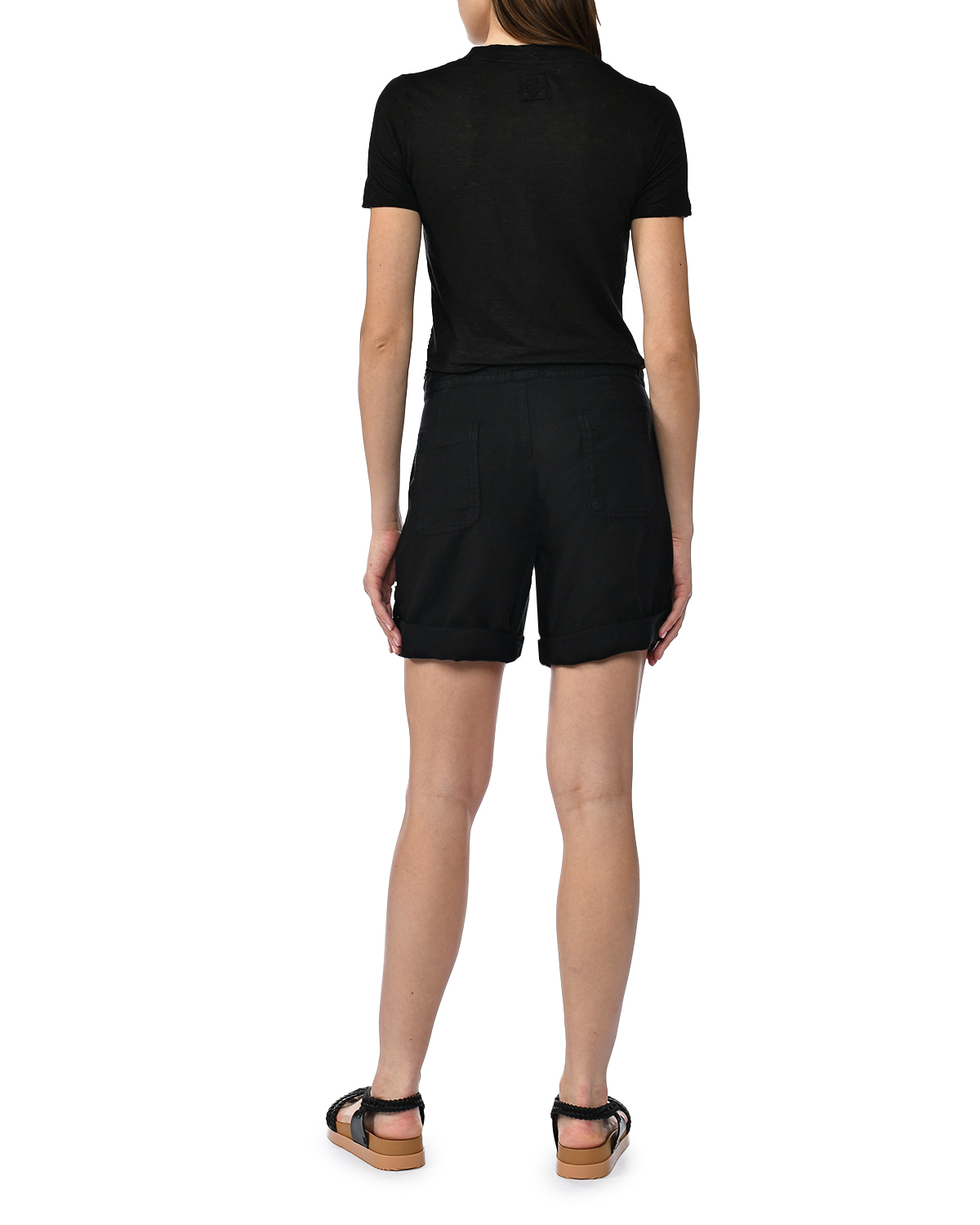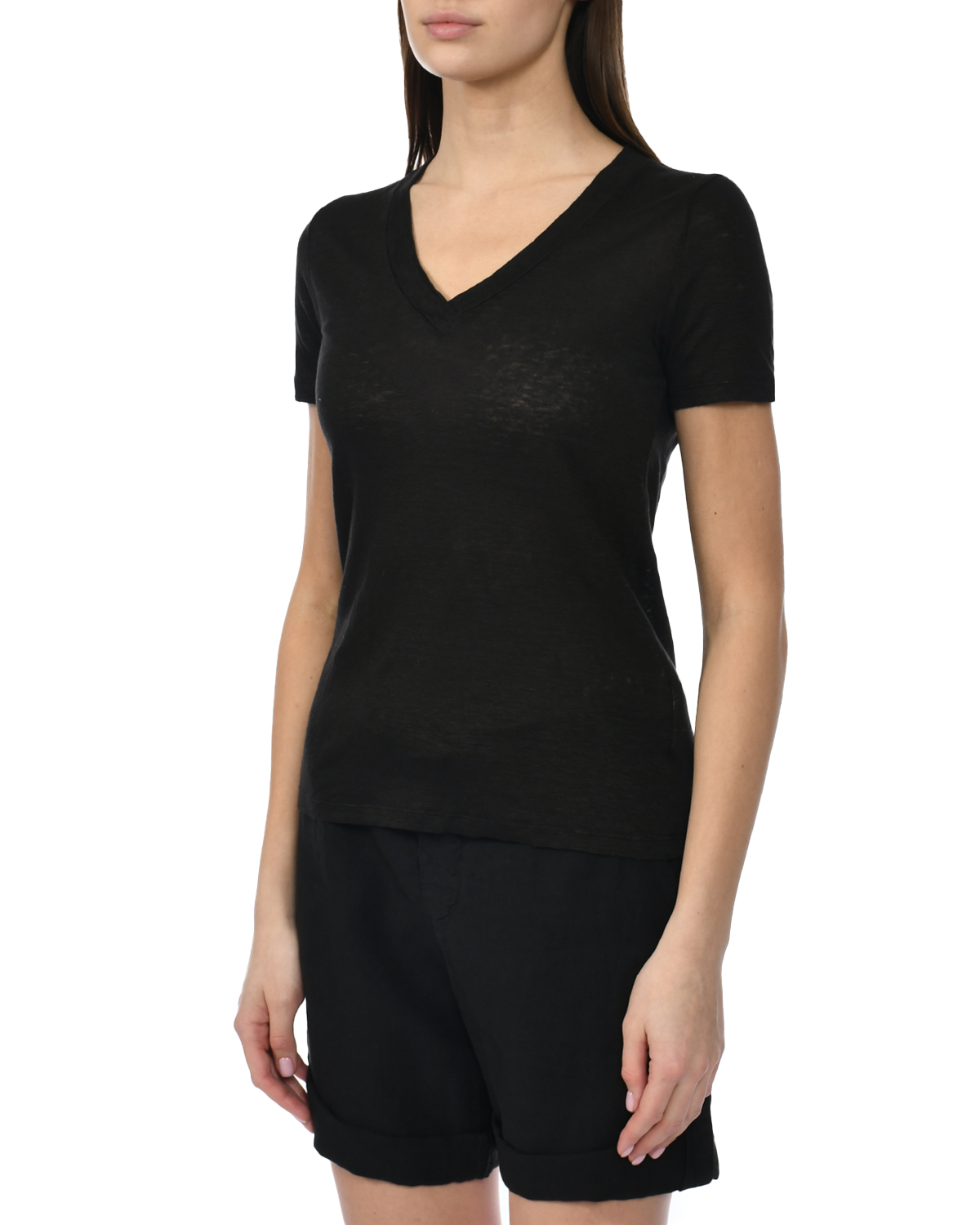 Льняная футболка с v-образным вырезом, черная