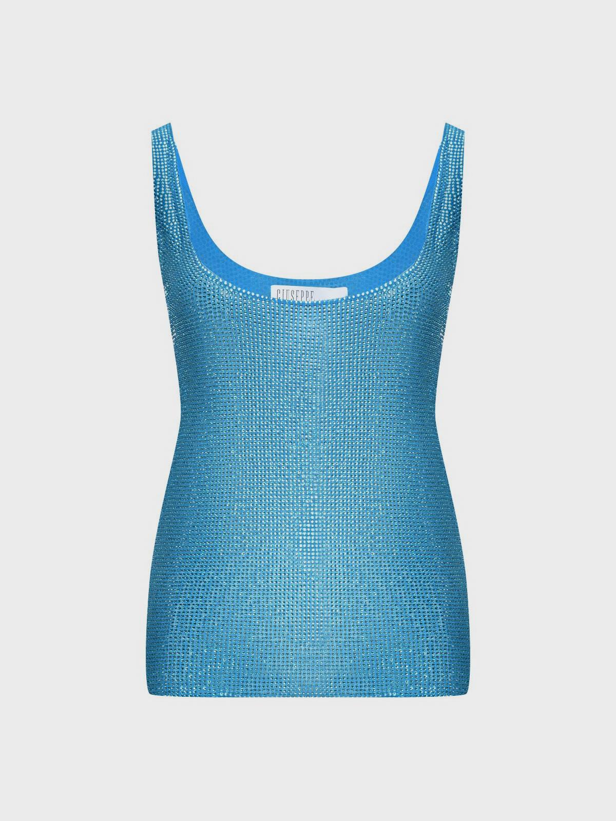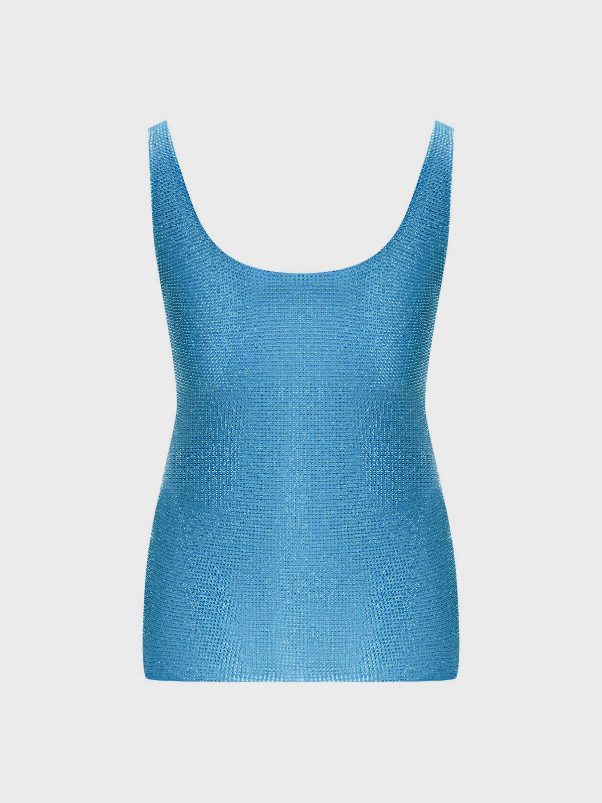 Трикотажный топ с кристаллами Swarovski, бирюзовый