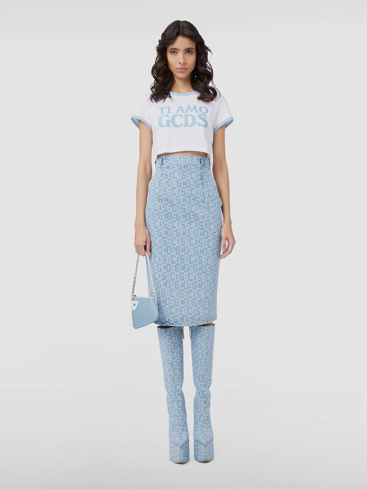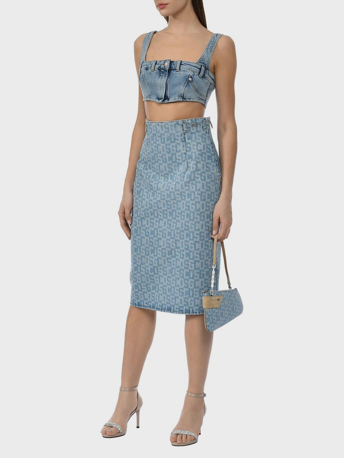 Юбка из денима с принтом из лого с вырезом сзади