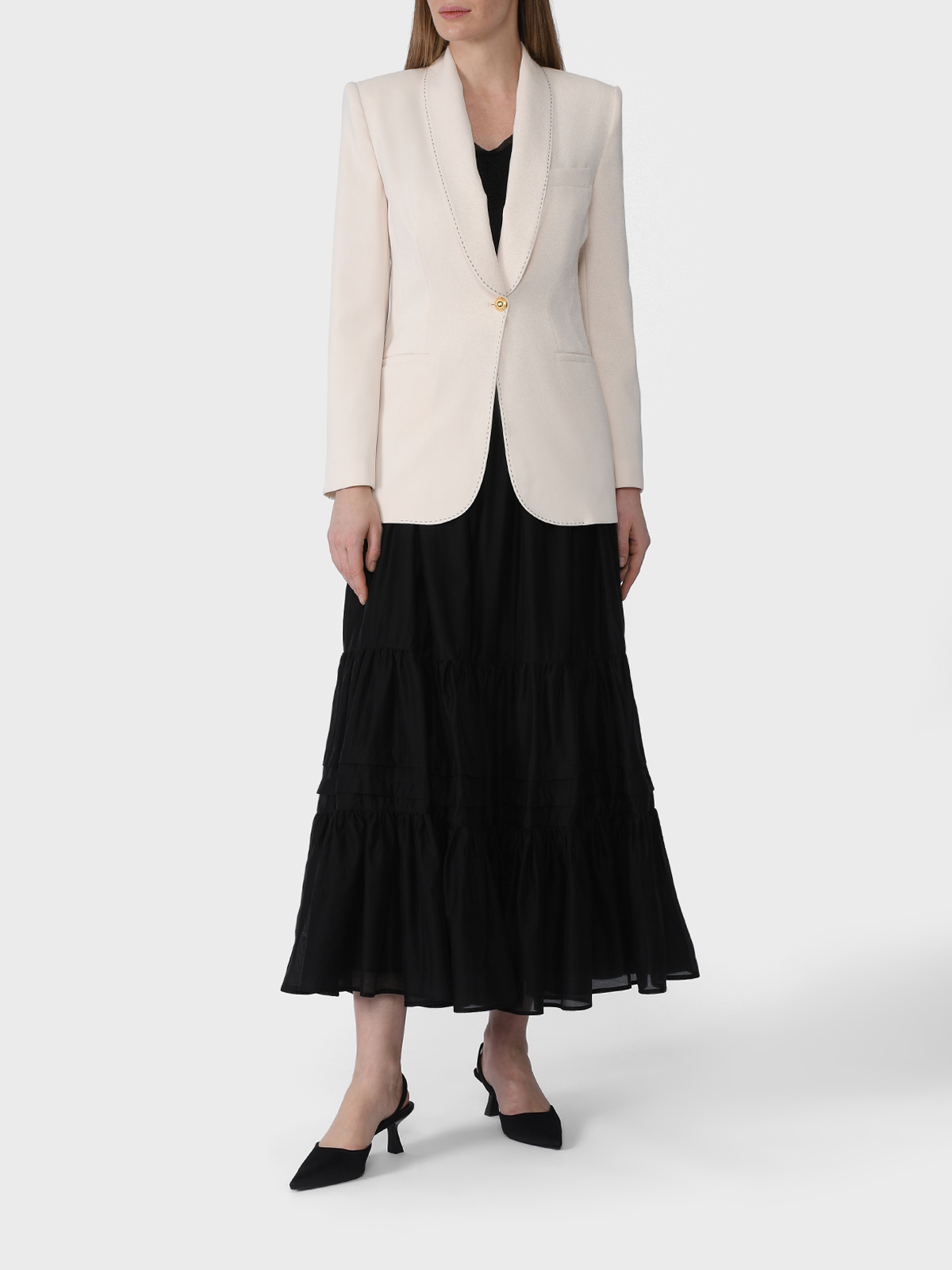 Размер на модели: 42. Параметры модели: 81 / 59 / 88. Рост: 175,5 см