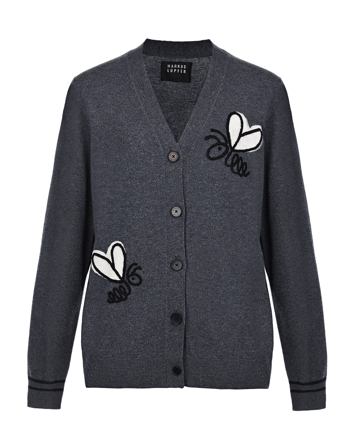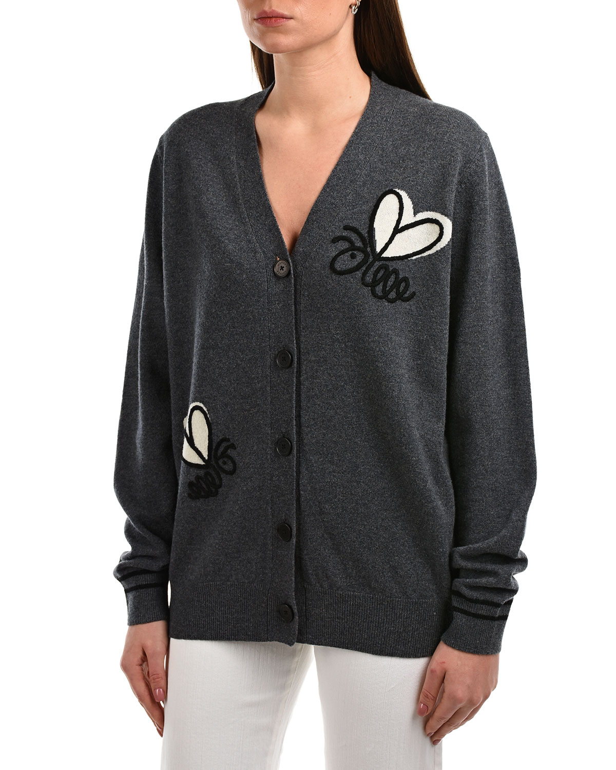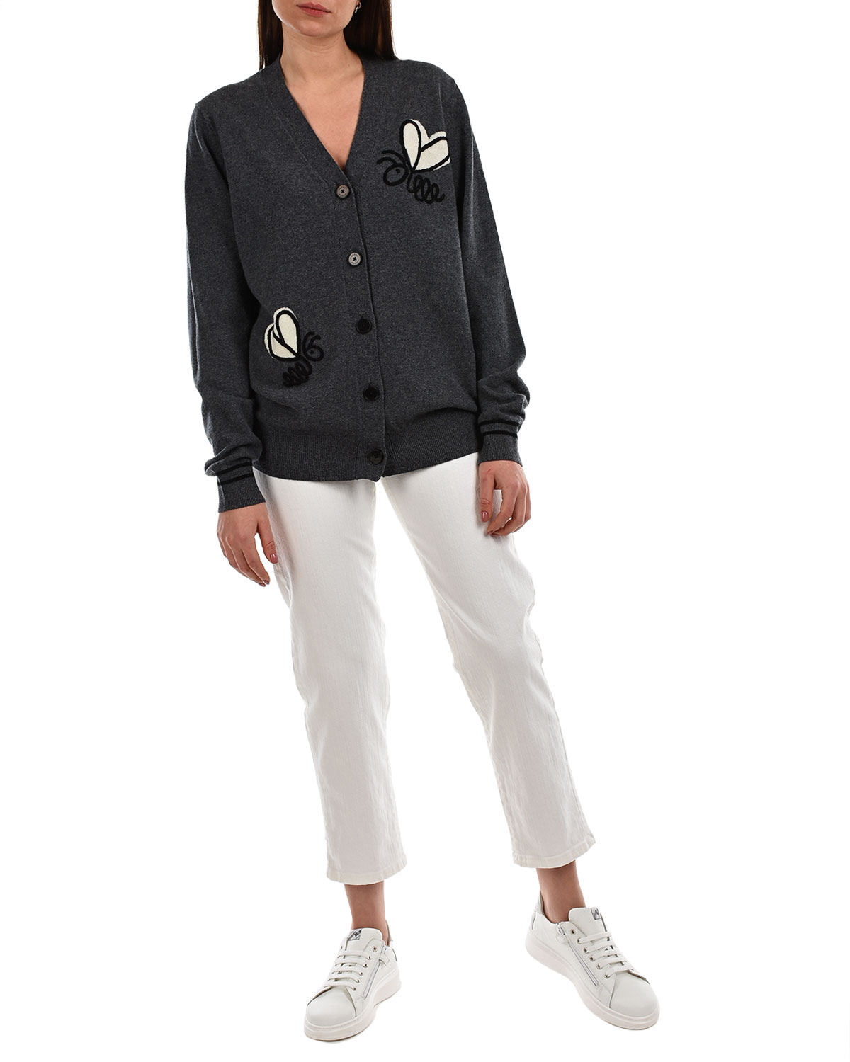 Серый кардиган с вышивкой и принтом