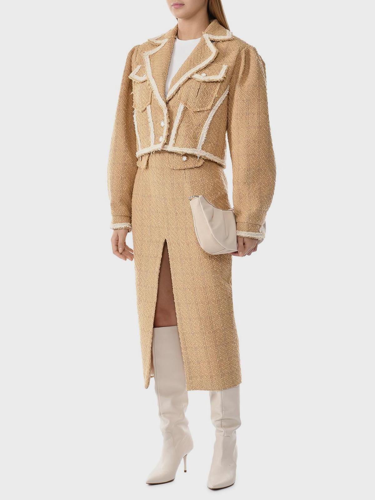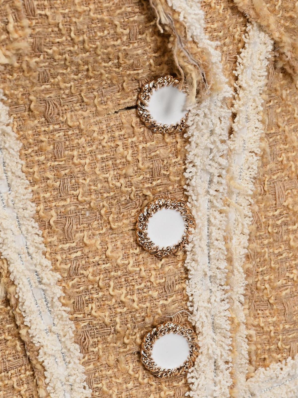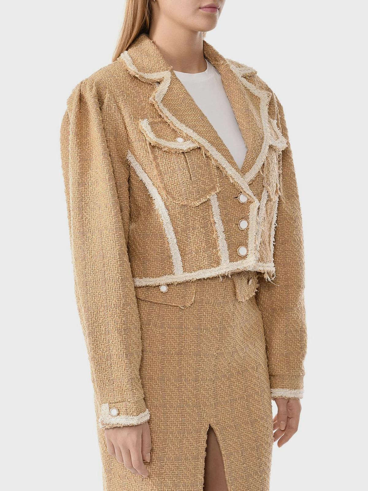 Укороченный твидовый жакет, коричневый