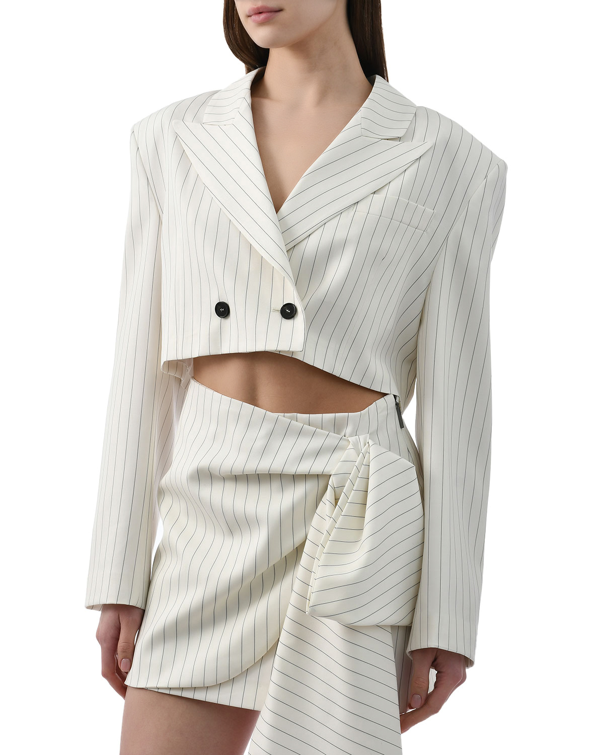 Жакет двубортный укороченный в полоску