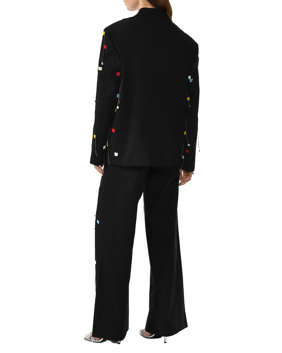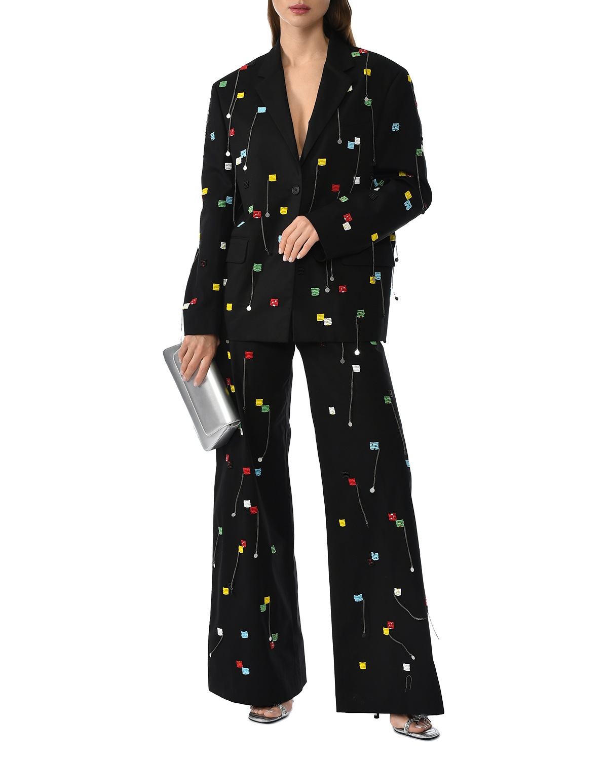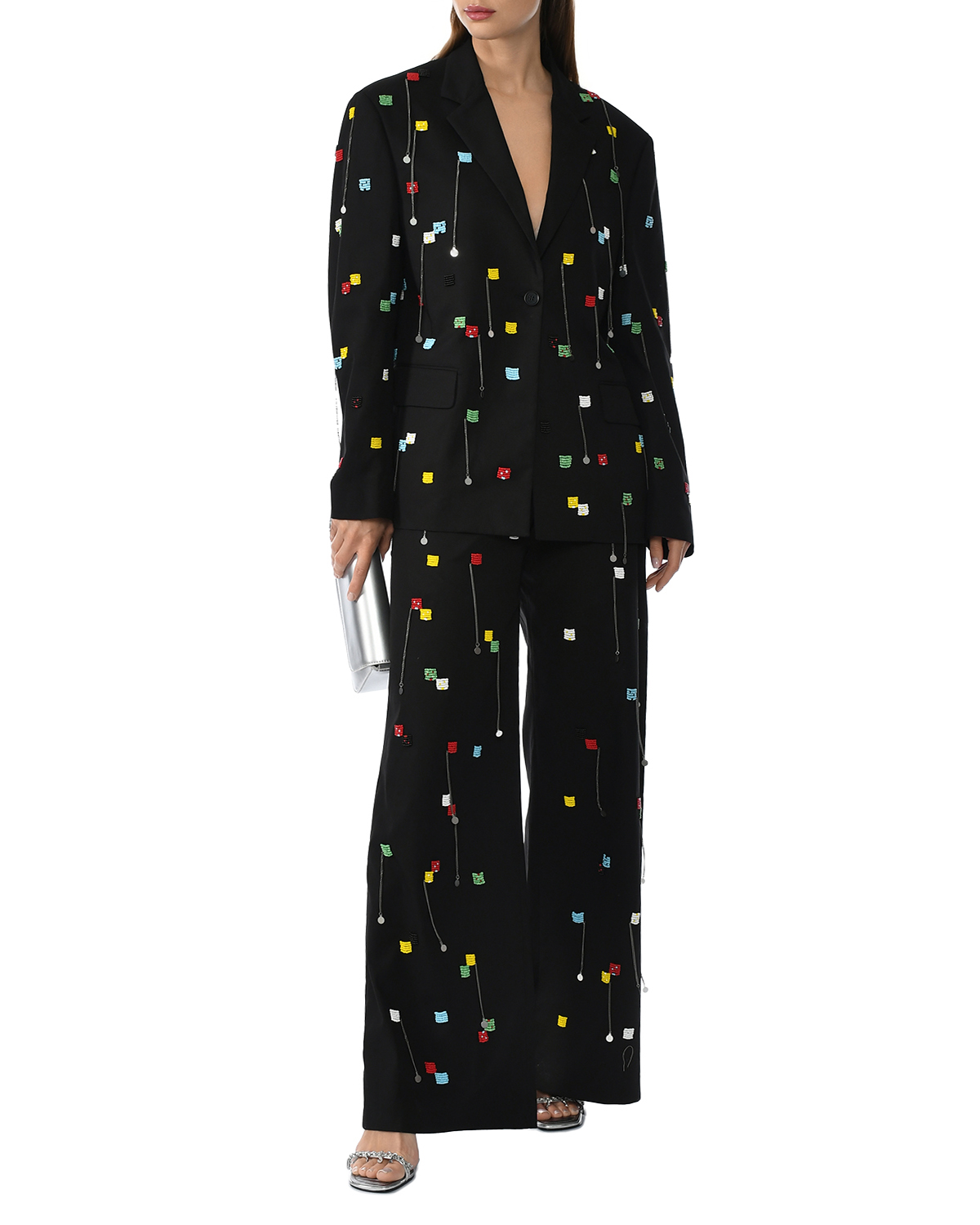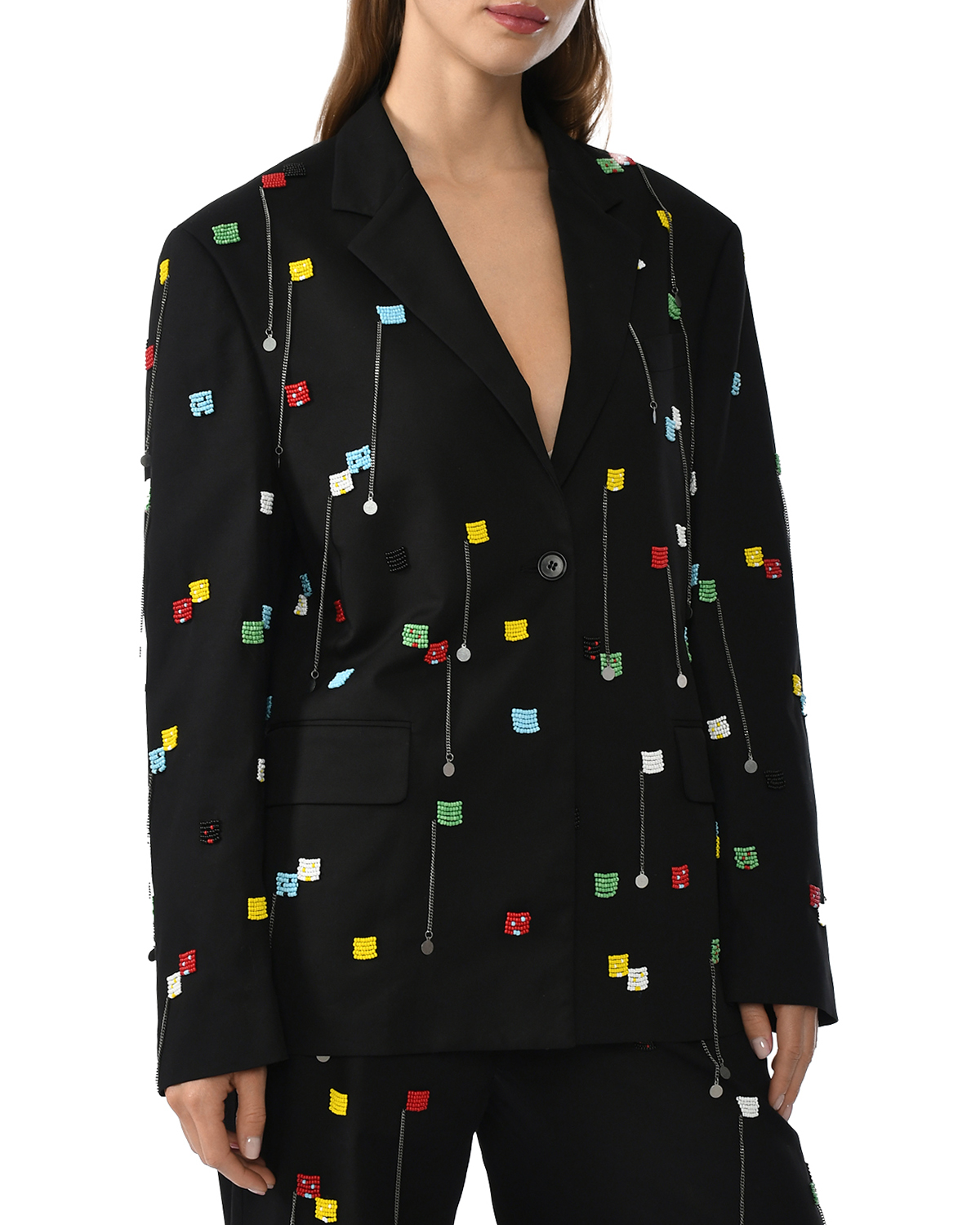 Жакет однобортный вышитый бисером, черный