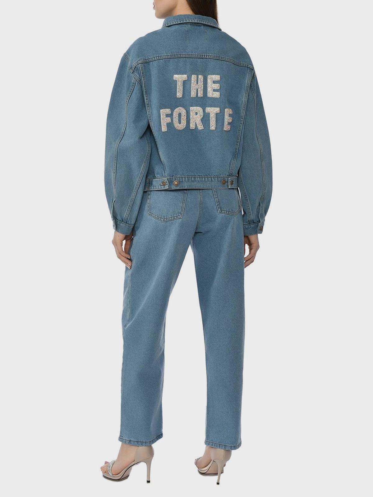 Джинсовая куртка с надписью Forte из стразов