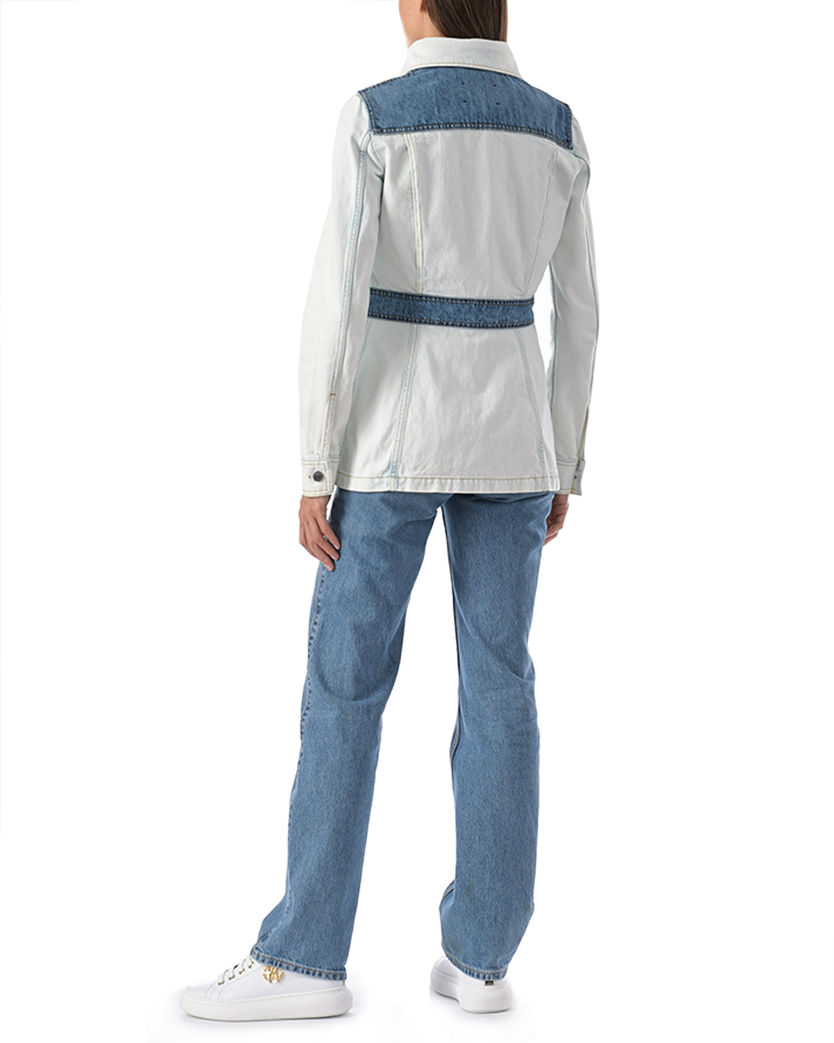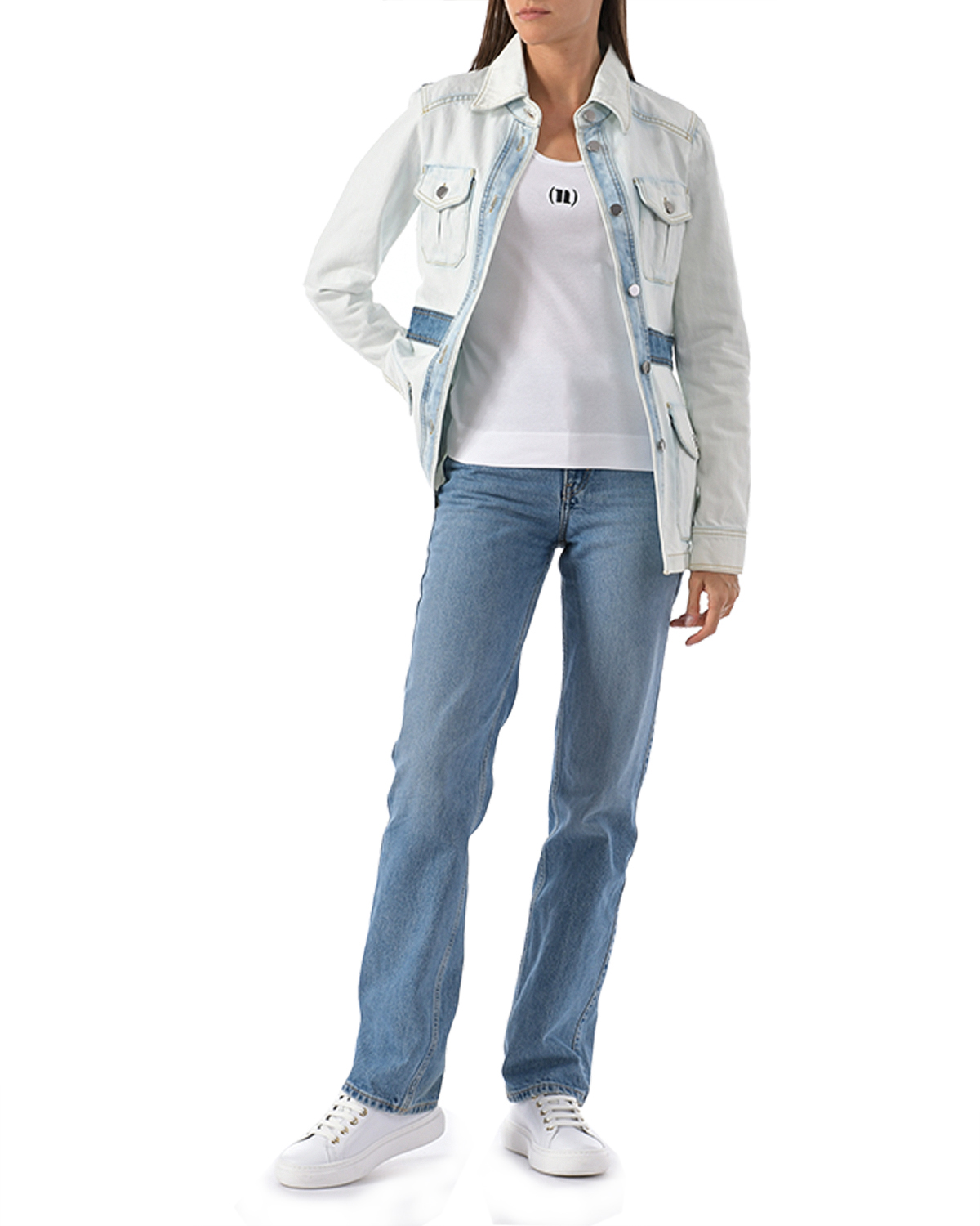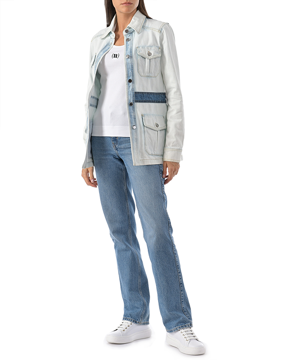 Голубая джинсовая куртка с накладными карманами