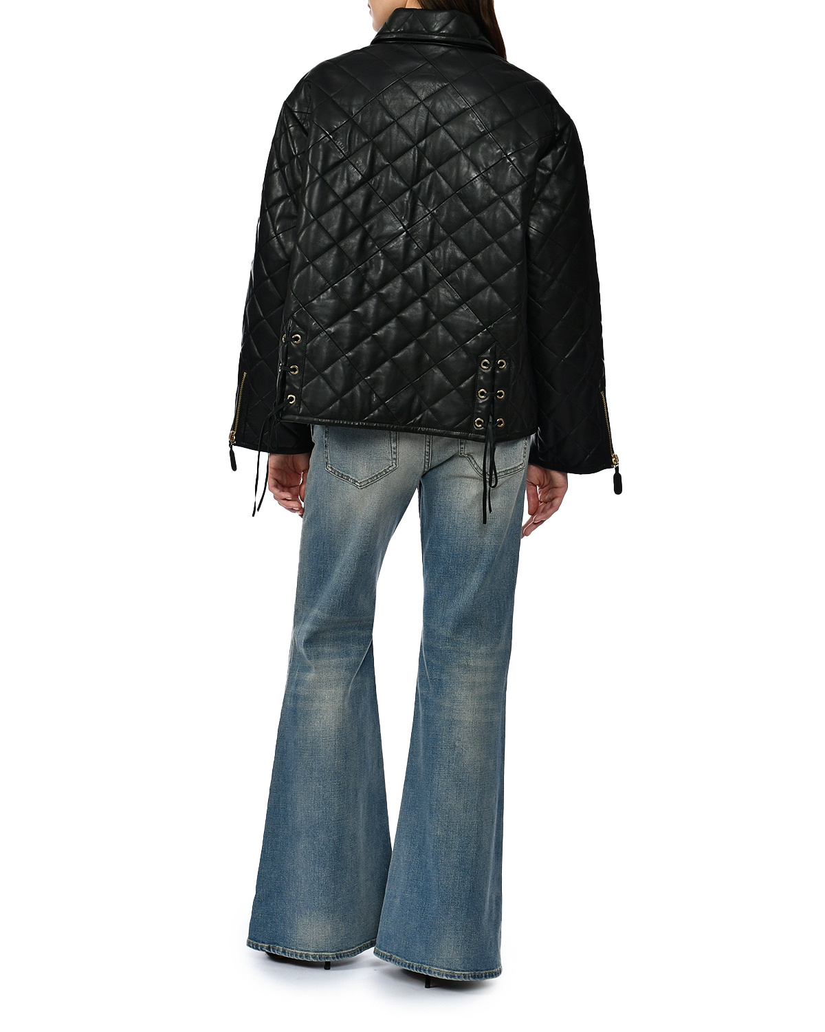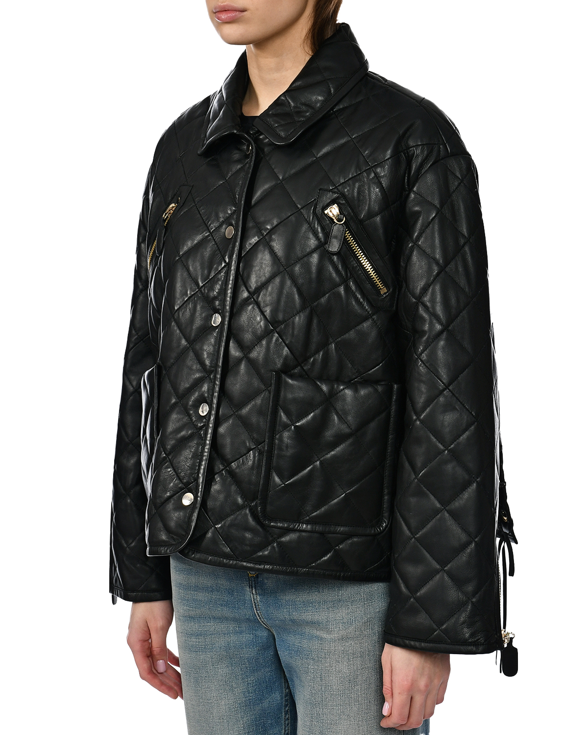 Куртка кожаная, стеганая ромбом