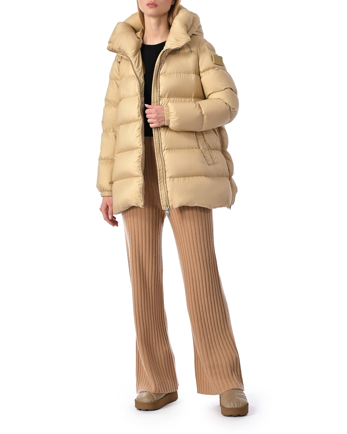 Куртка-пуховик с капюшоном, кремовая