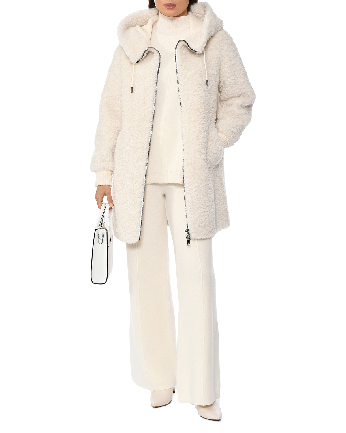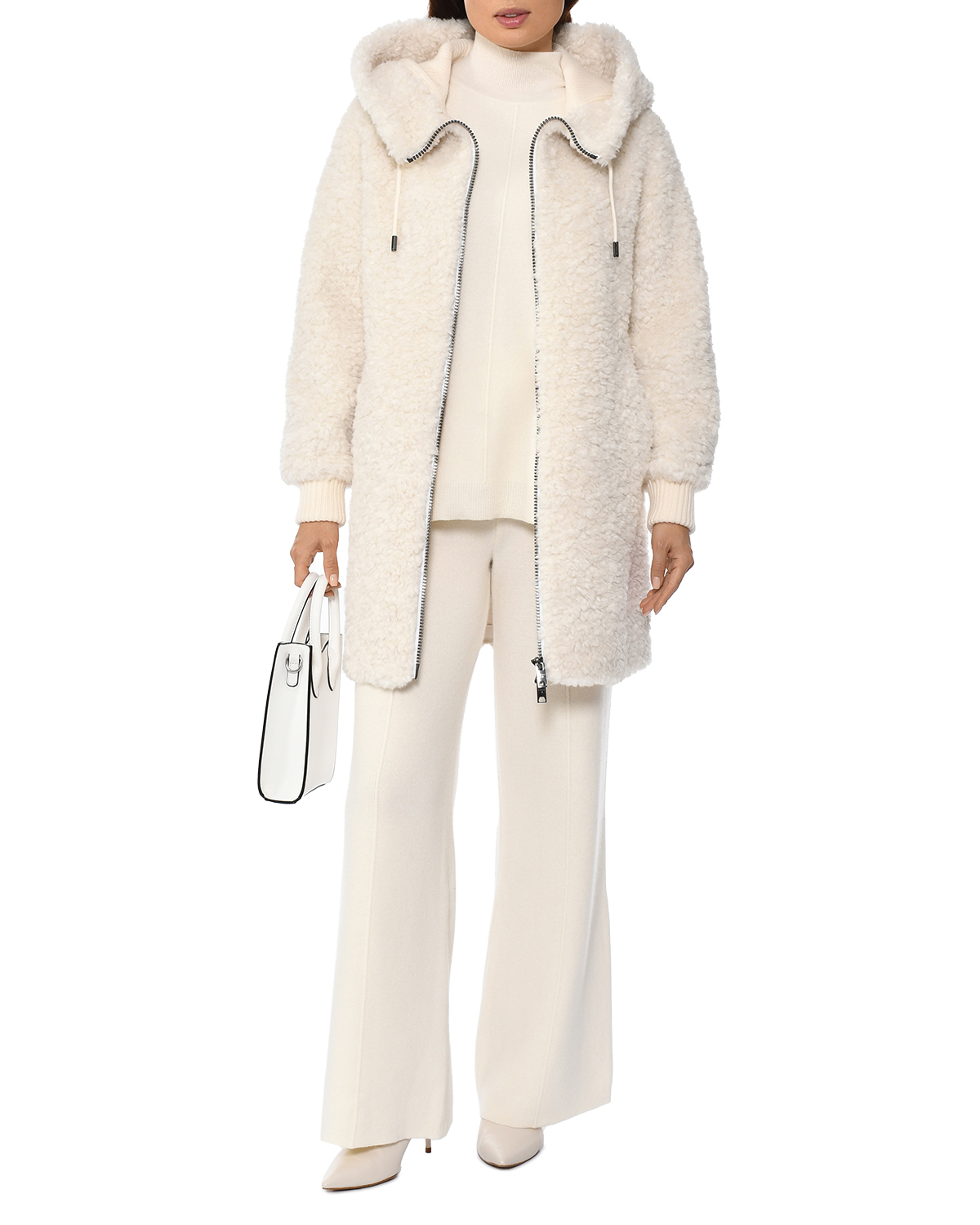 Куртка удлиненная из экомеха под овчину