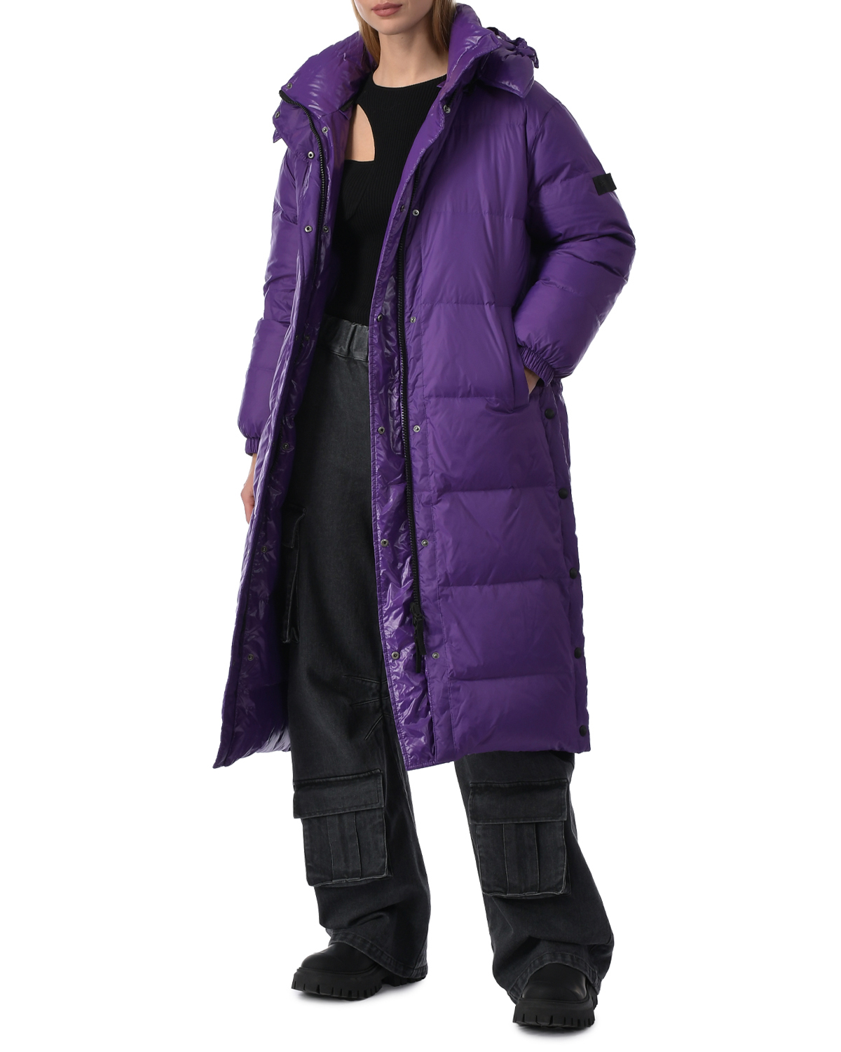 Стеганое двусторонне пальто, фиолетовое