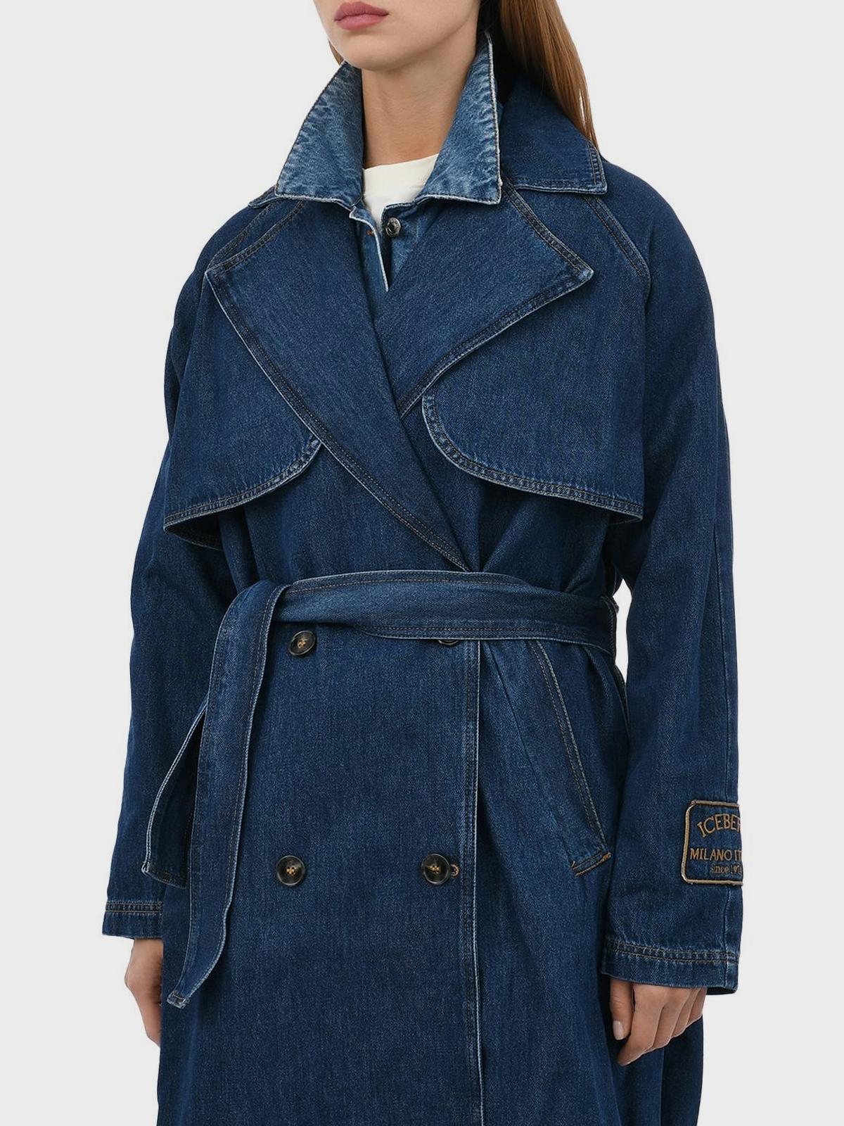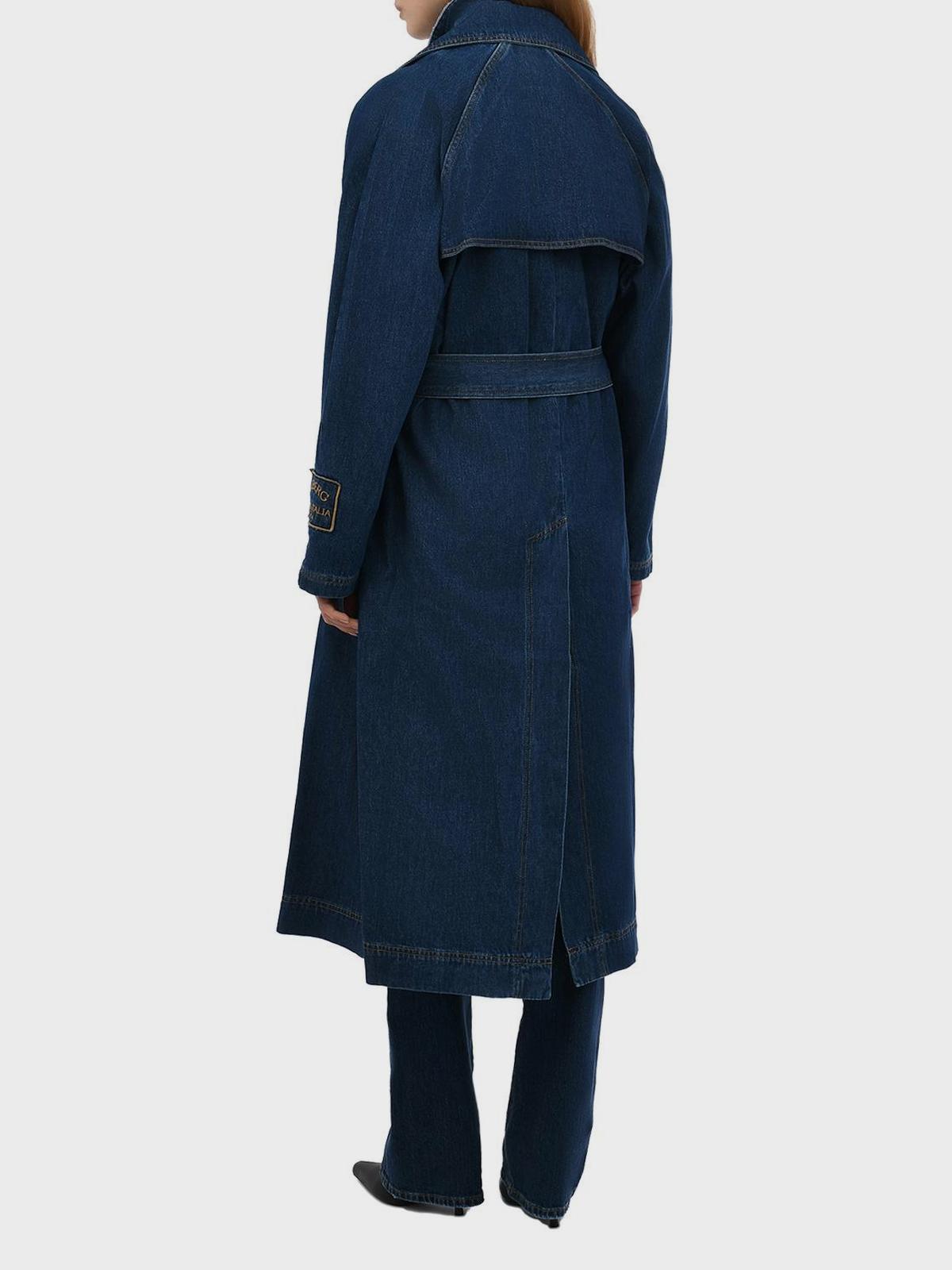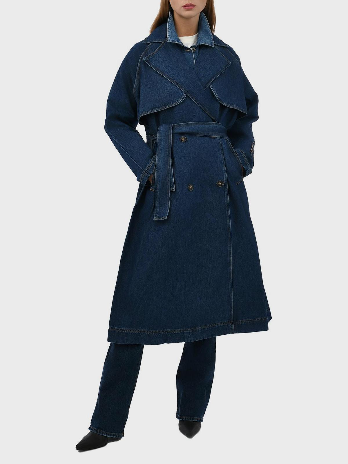 Двубортный джинсовый тренч, синий