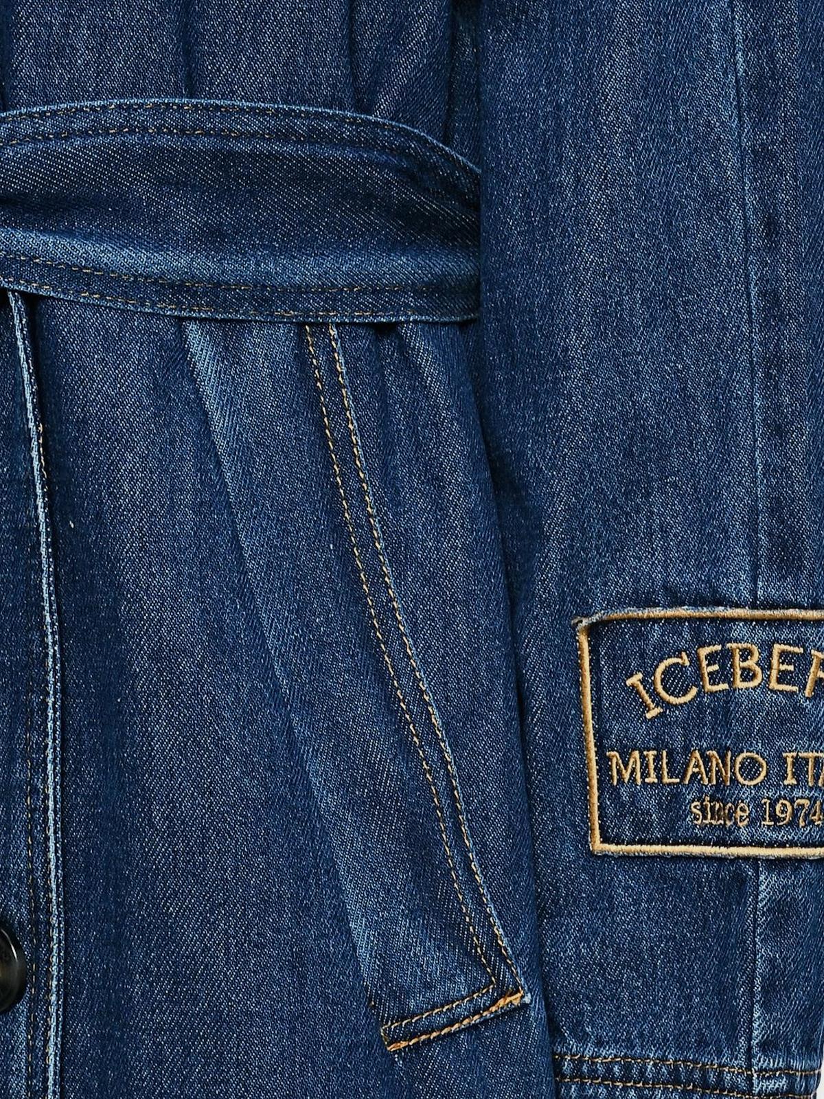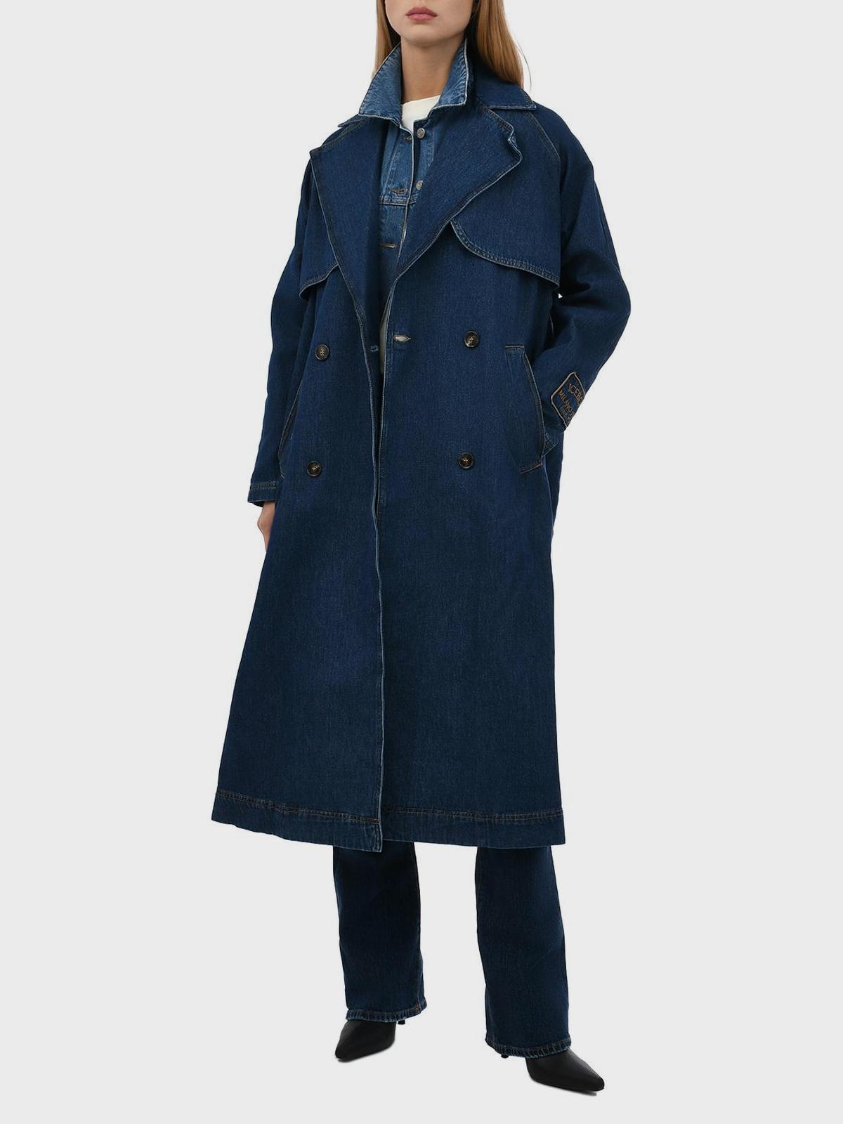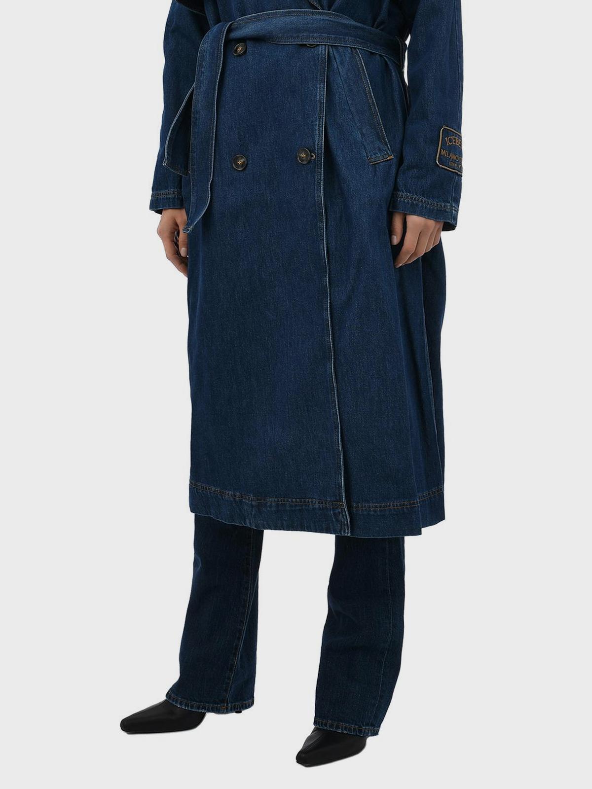 Двубортный джинсовый тренч, синий
