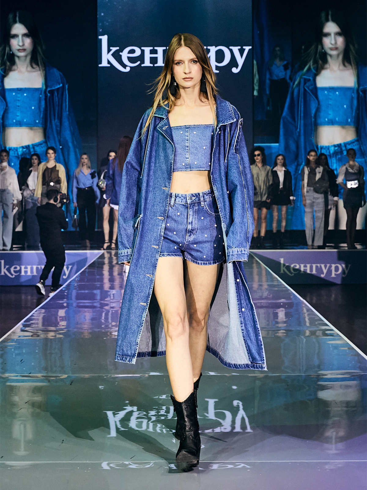 Джинсовый плащ оверсайз, синий