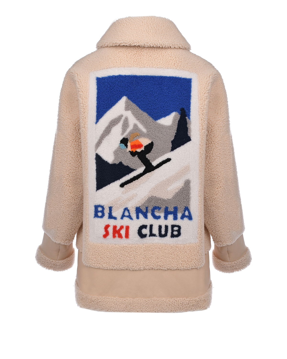 Бежевая дубленка с декором "Ski Club"
