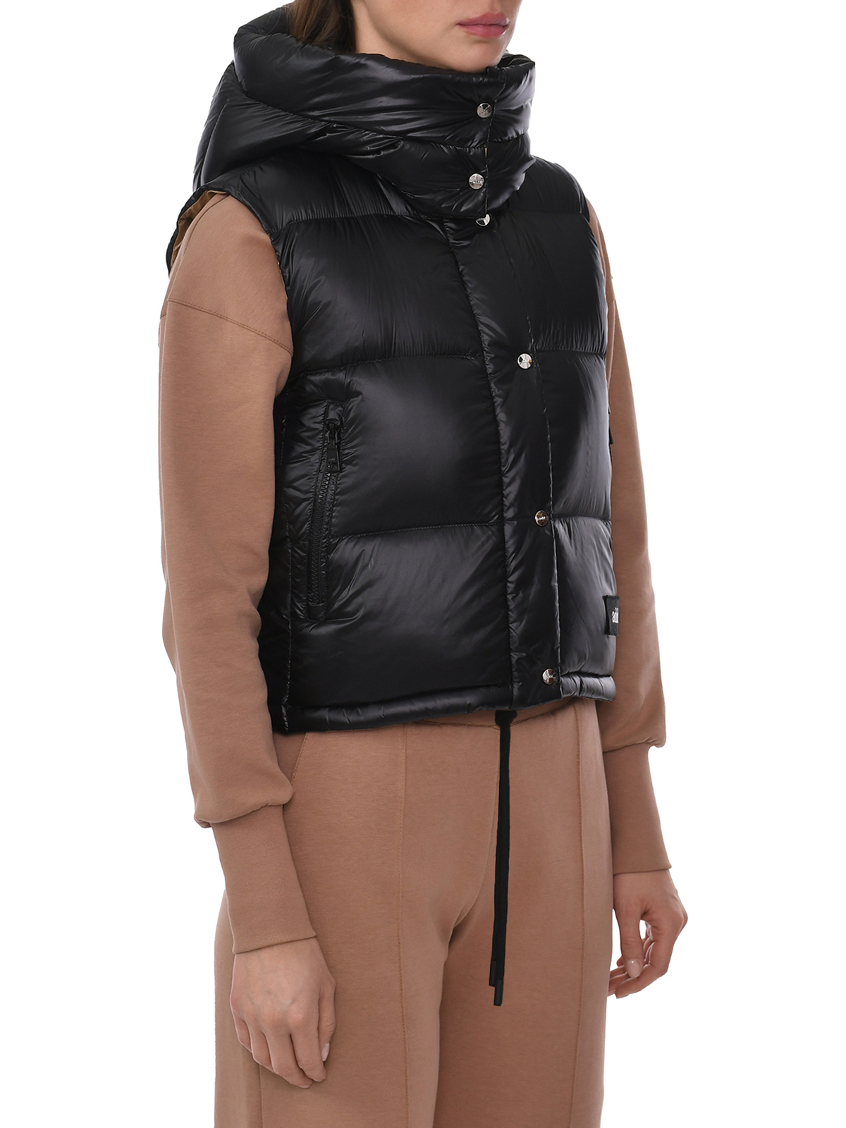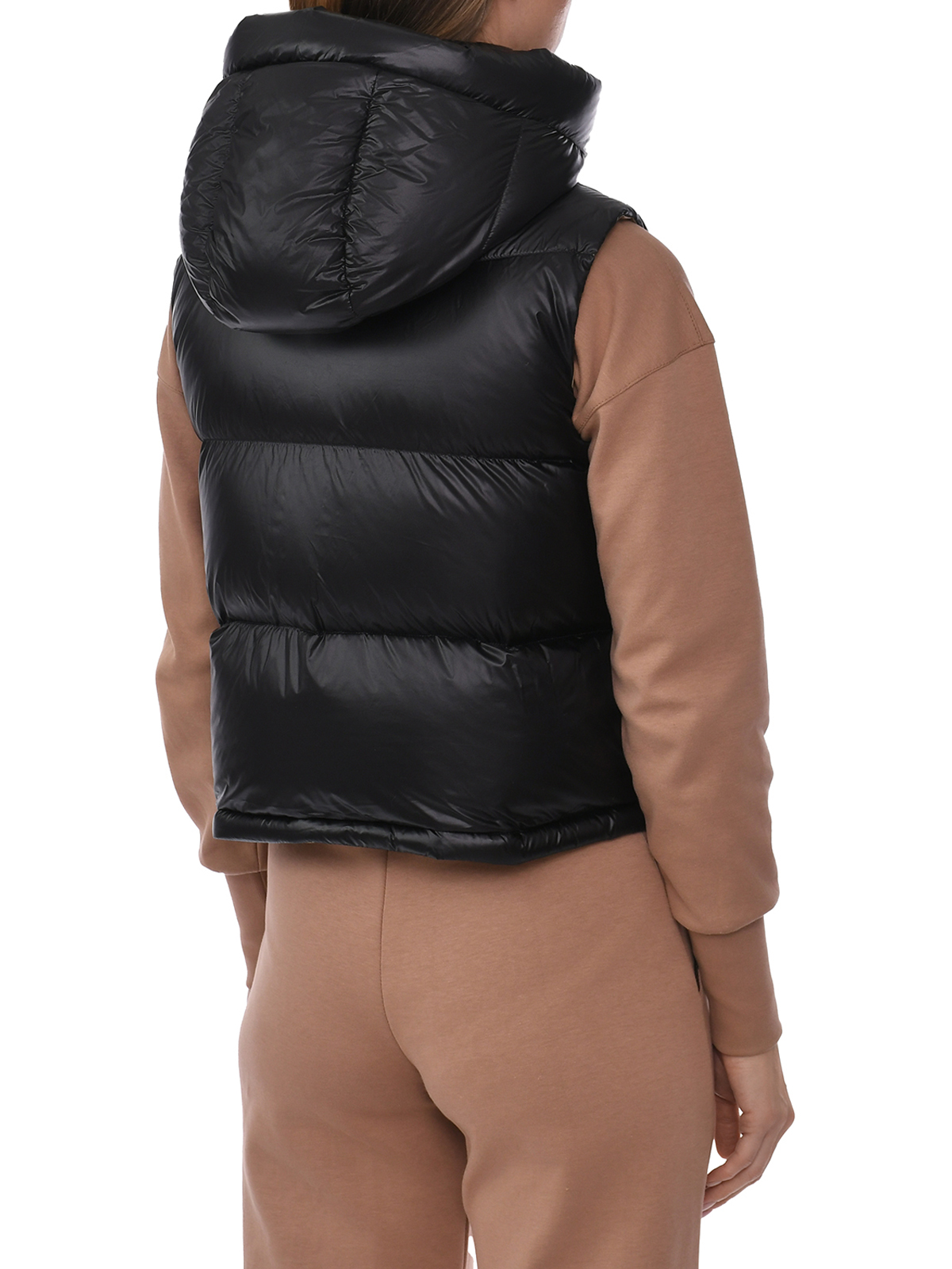 Укороченный жилет с капюшоном, черный